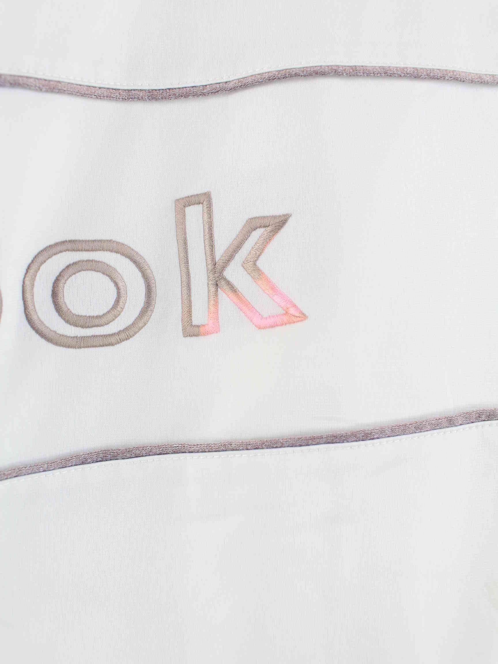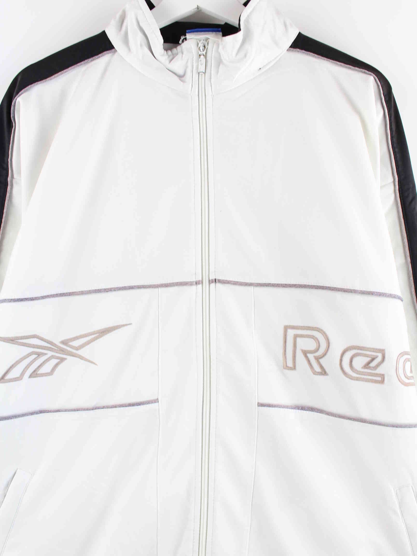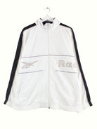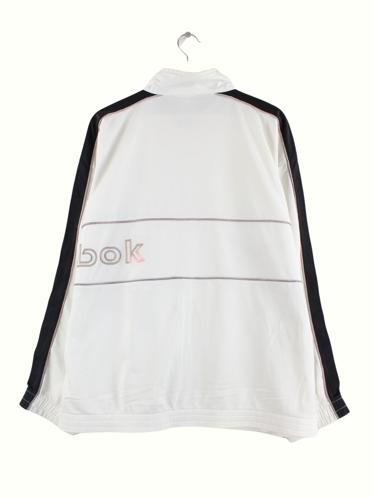 Training jacket from Reebok with embroidery in size XXL from the early 2000s. It is made of synthetic material and is available in white.