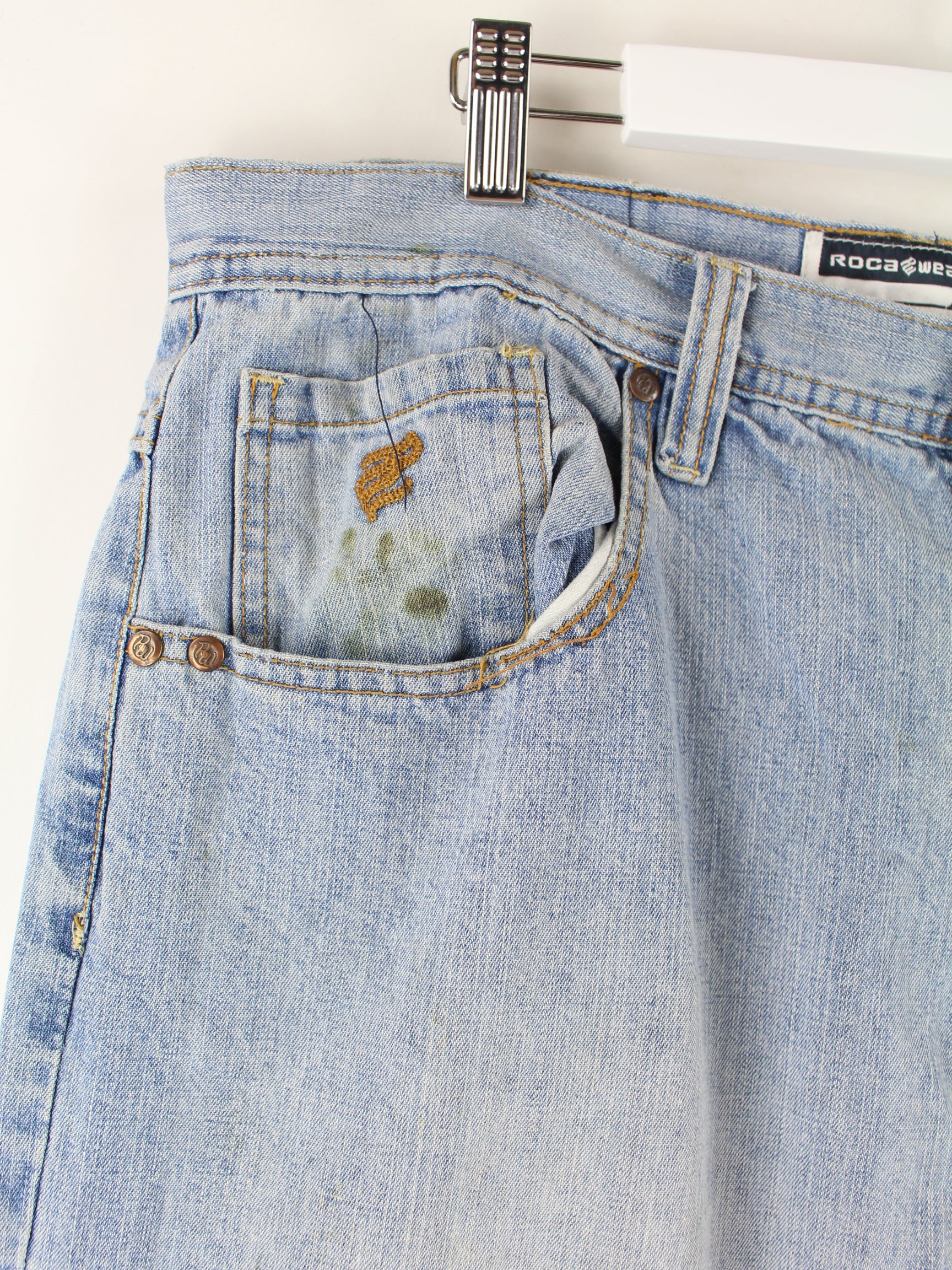 Blue jeans from the brand Roca Wear in W34 x L34 from the early 2000s. We would describe the condition as 'fine' (see pictures).