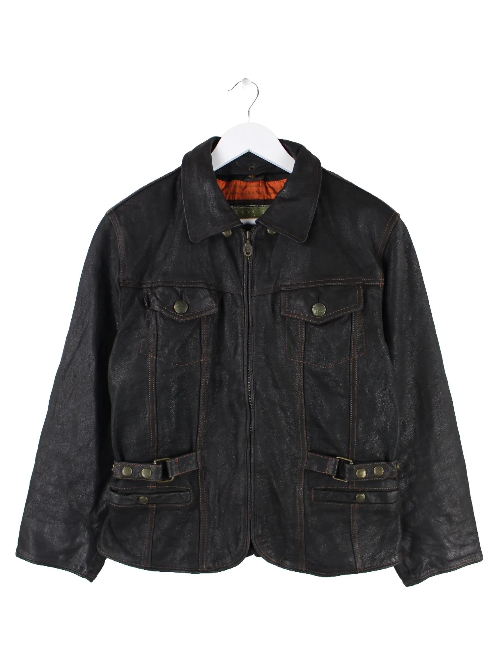 ROCKANDBLUE Damen 90s Vintage Biker Leder Jacke Schwarz M