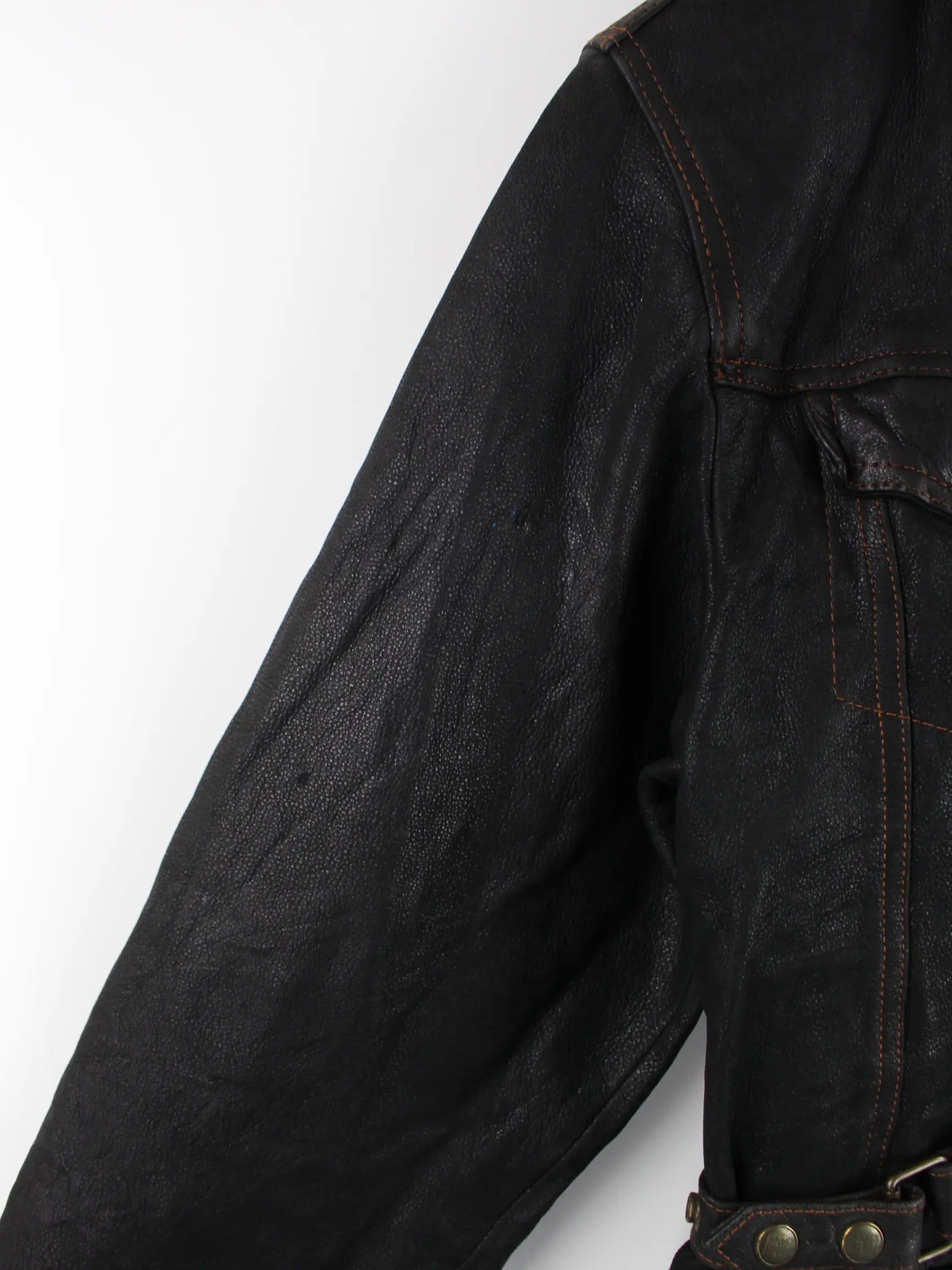 Schwarze Jacke vom Label ROCKANDBLUE aus den 90'ern in Größe M. Sie ist aus Leder produziert und in gutem Zustand bei uns vorrätig.
