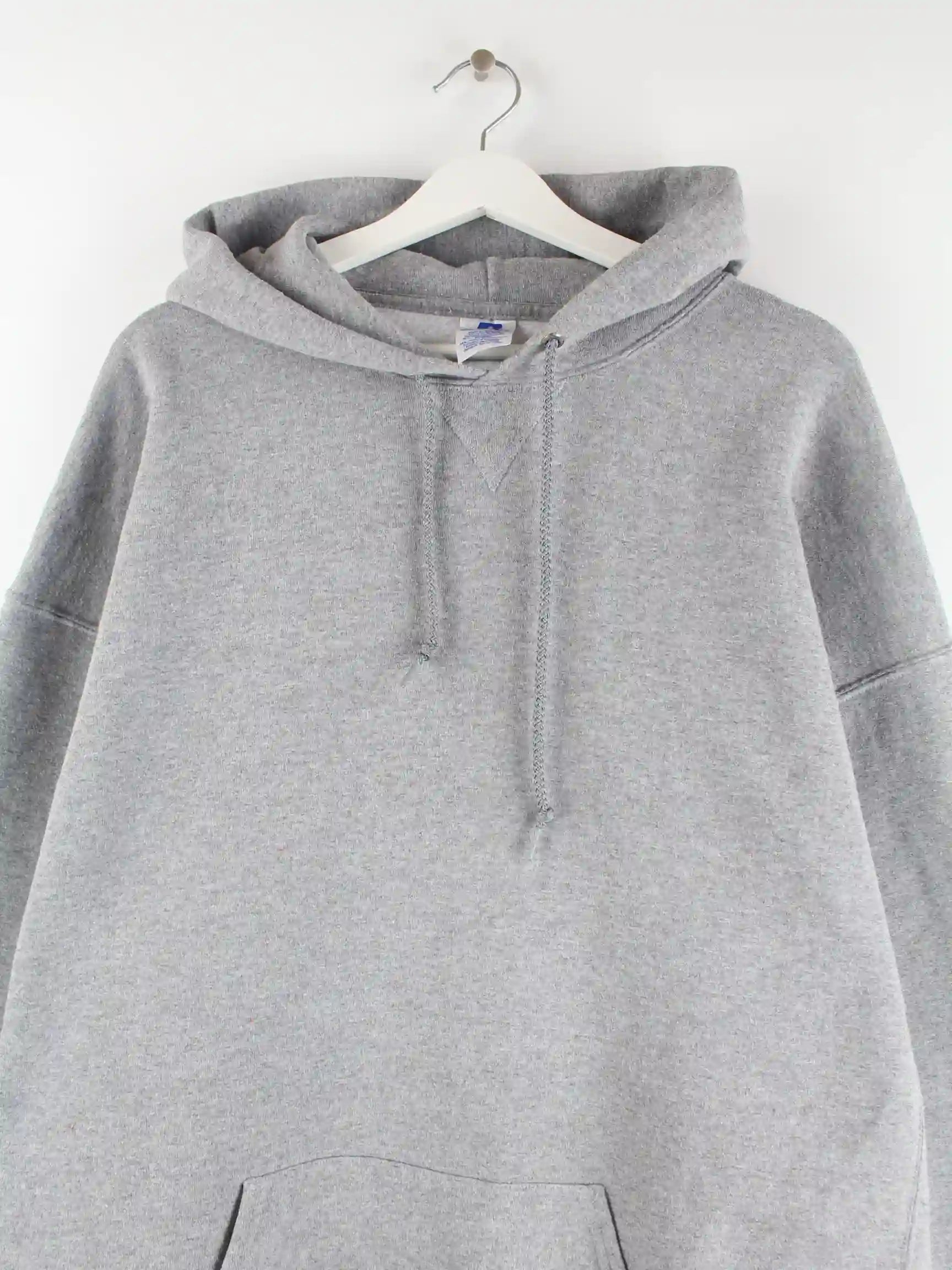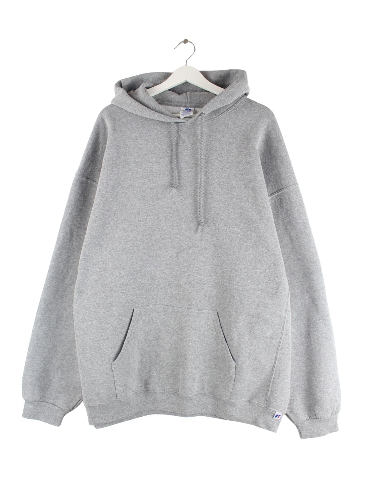 Basic Kapuzenpullover der Brand Russell Athletic in Größe 3XL. Er ist aus einer Baumwollmischung angefertigt und in Grau vorrätig.