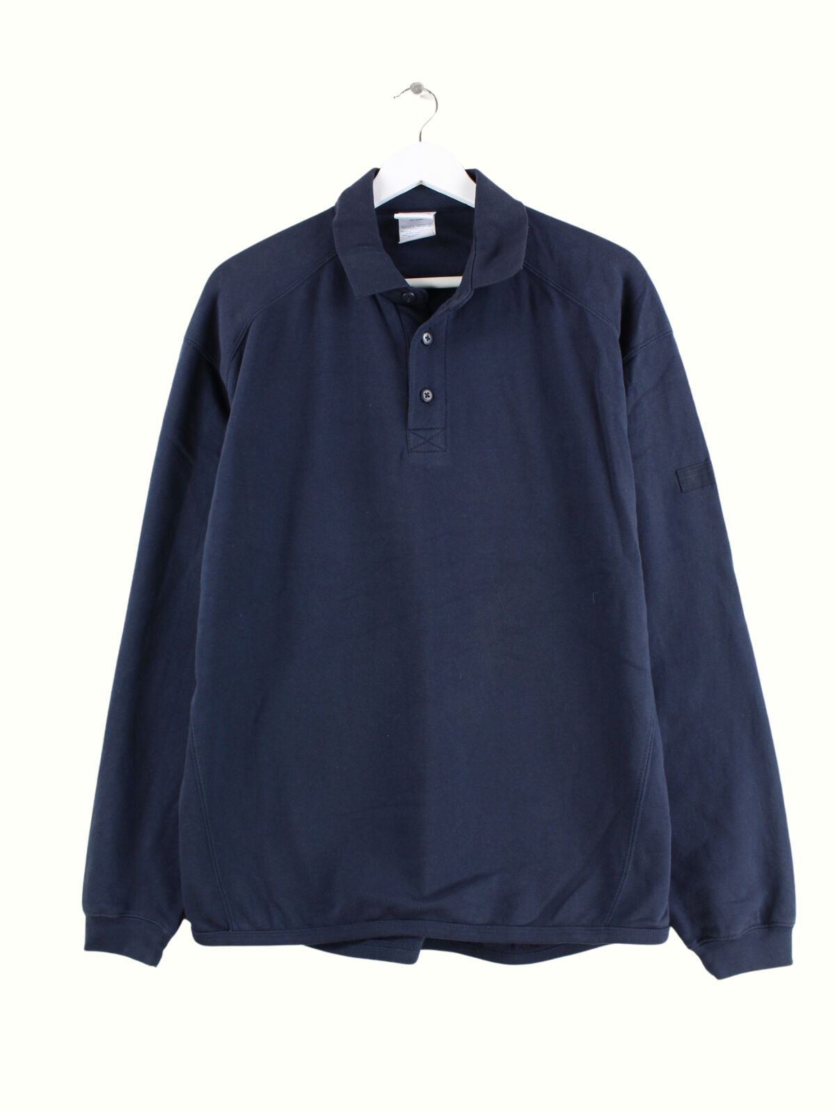Blue sweater from the Russell Athletic brand from the 90s in size L. It is made from a cotton blend and is on offer in very good condition.