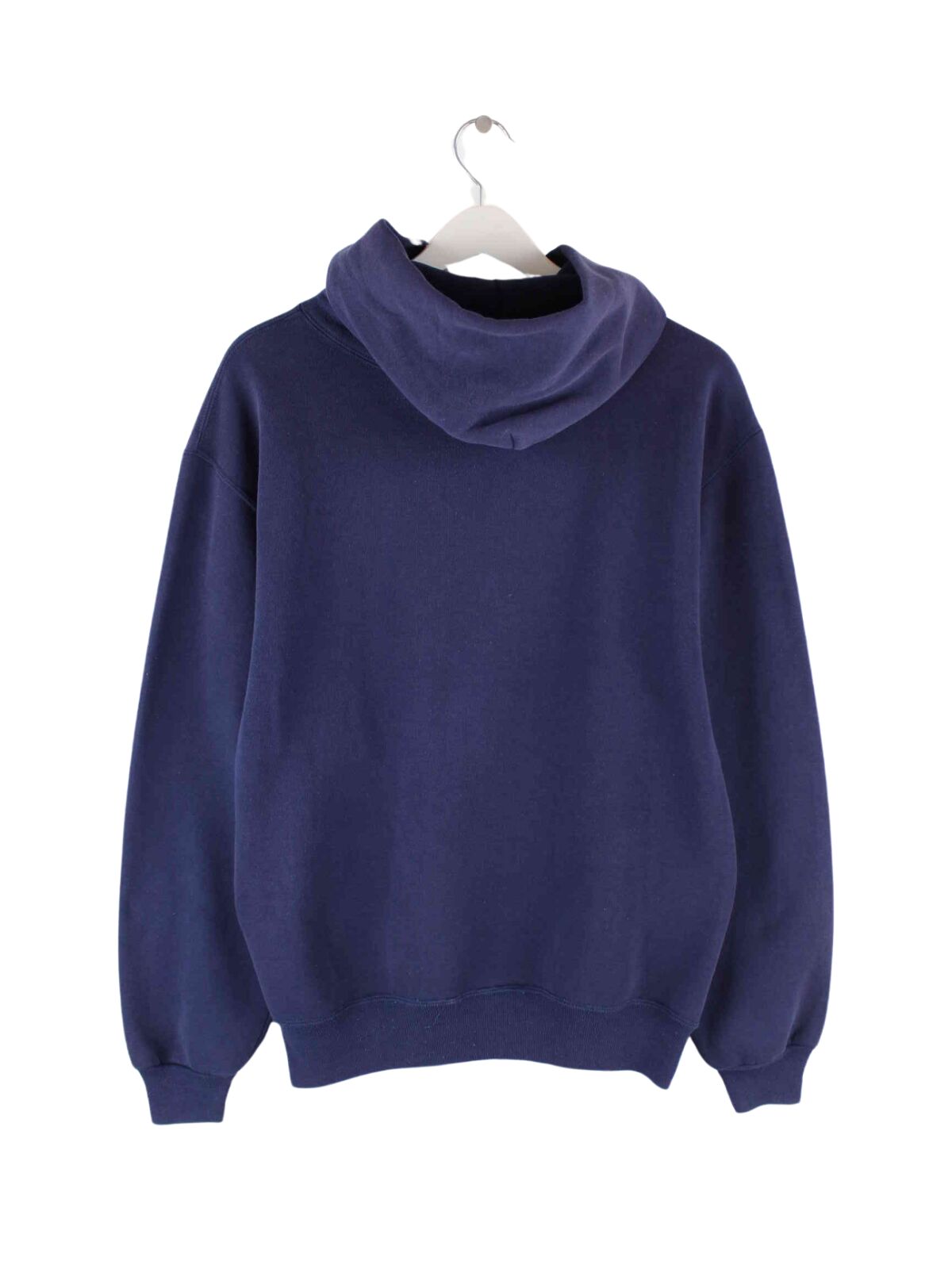 Blue hoodie with embroidered logo of the Russell Athletic brand from the 90's in size M. It is made from a cotton blend and is available from us in very good condition.
