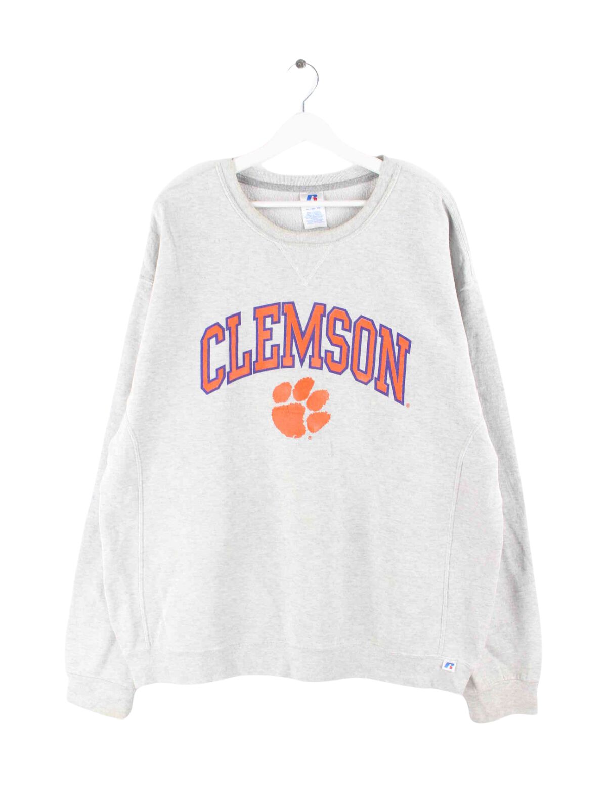 Sweater from Russell Athletic in size XL. It is made from a cotton blend and is available in gray. With rare Clemson print.