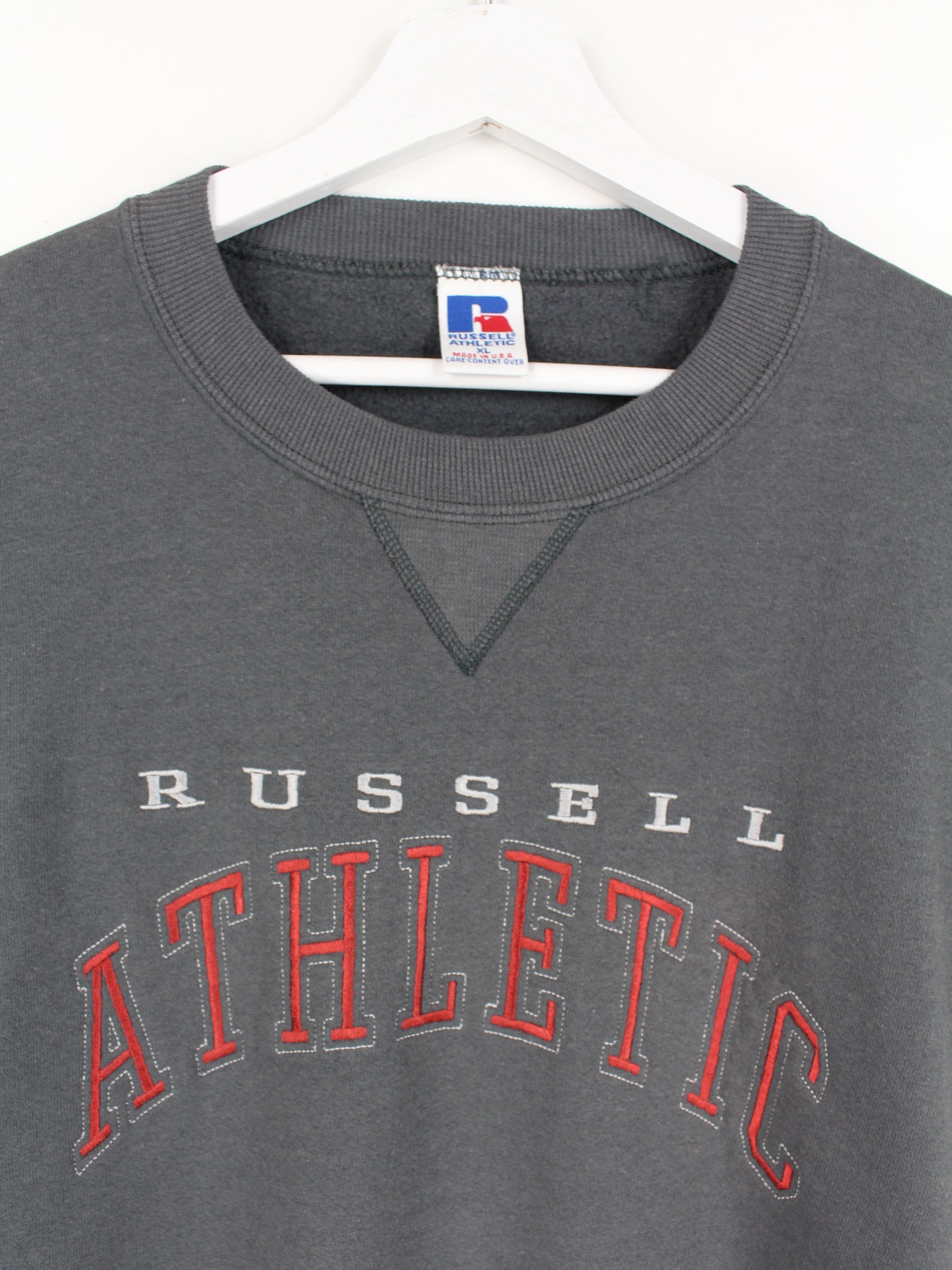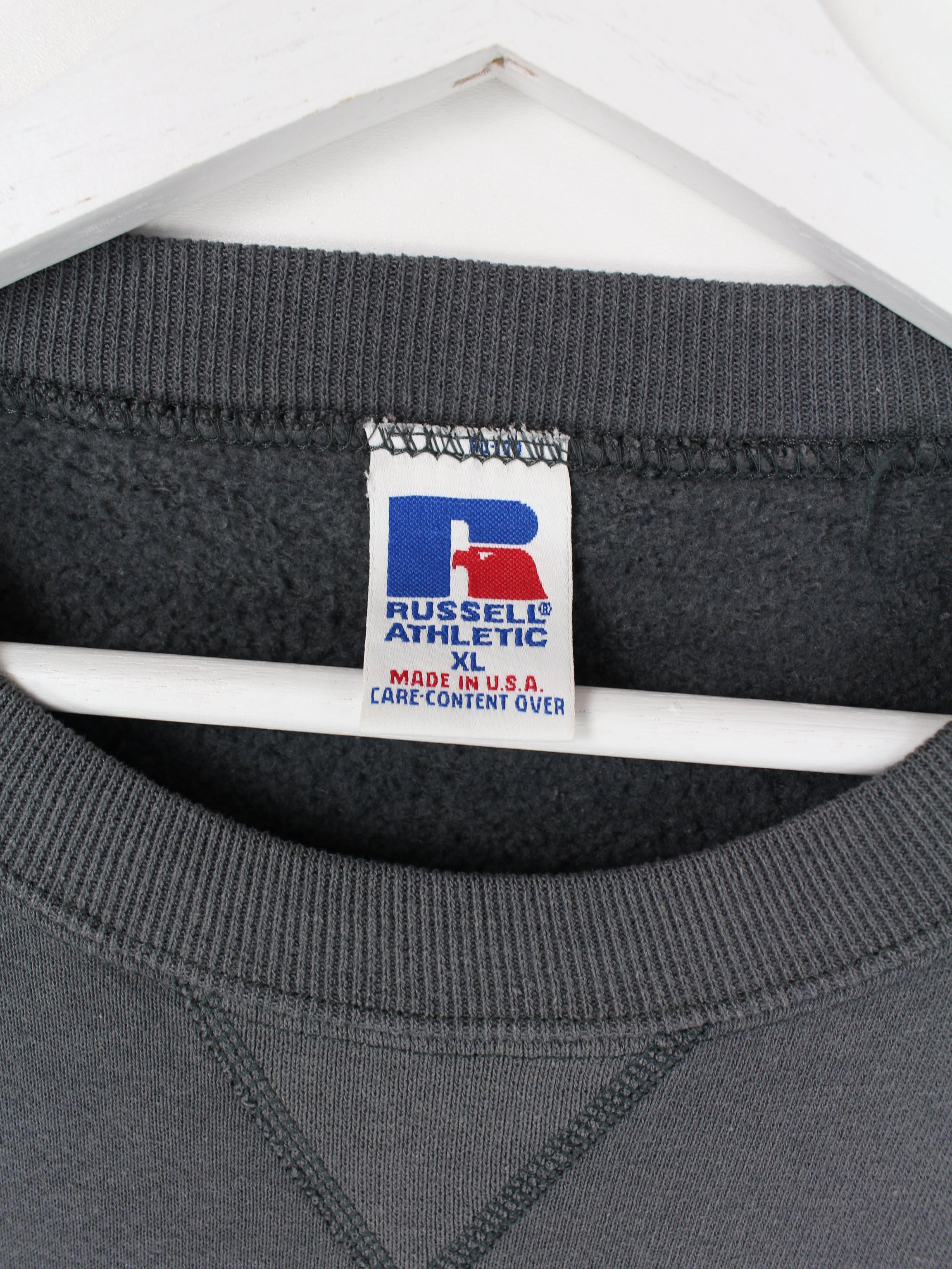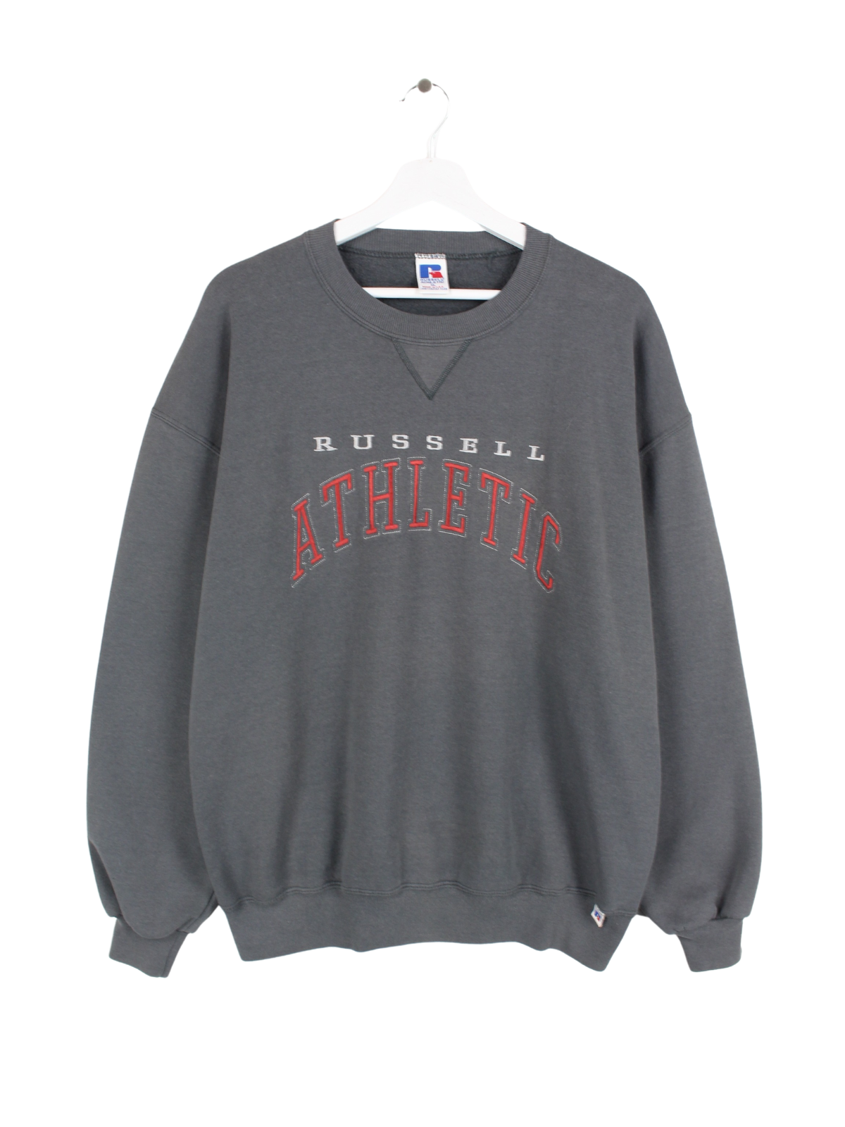 Gray Russell Athletic Sweater with a large embroidery on the front.
