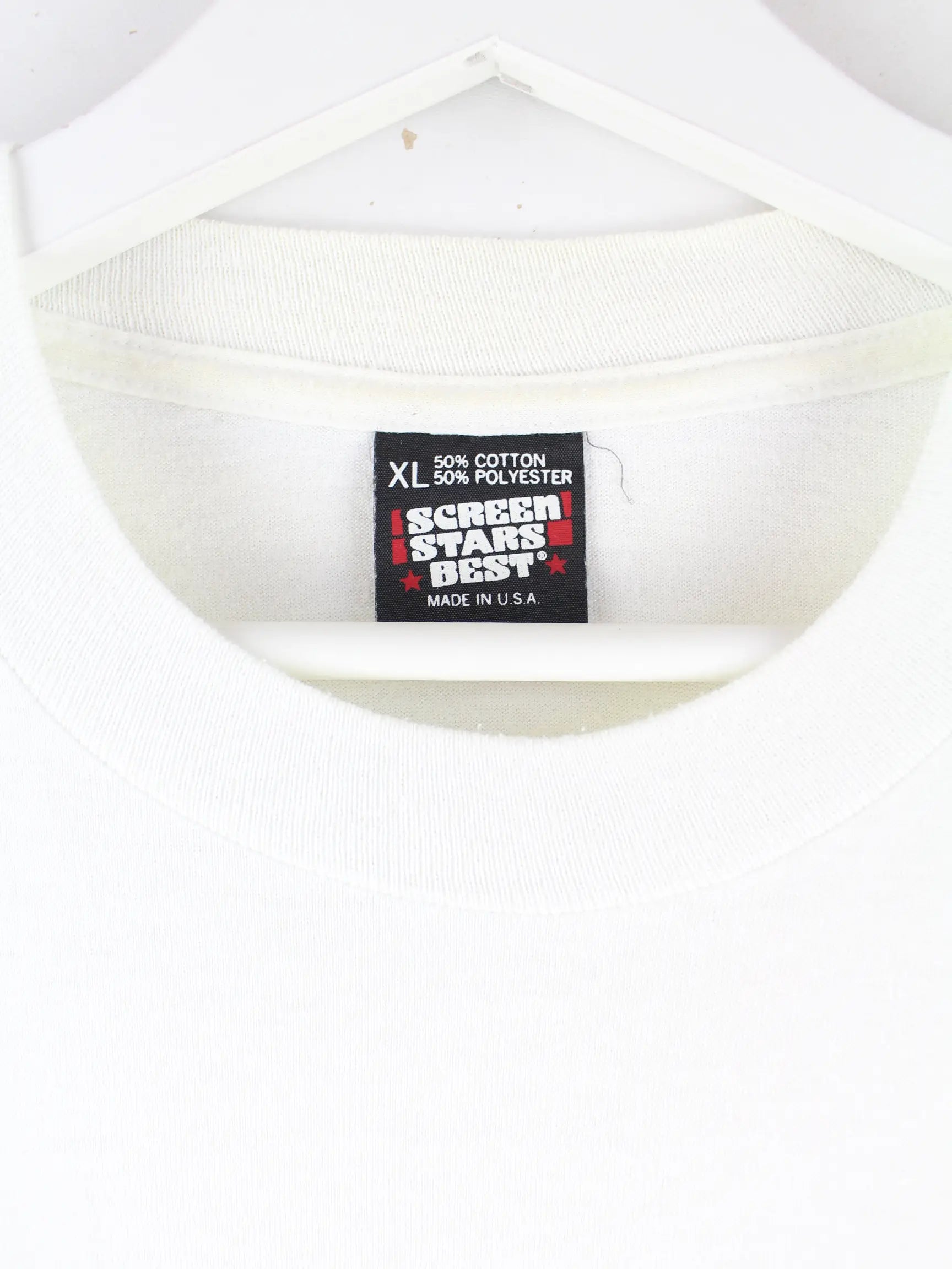 Weißes T-Shirt der Brand Screen Stars in Größe XL. Es ist aus Baumwolle gemacht und in sehr gutem Zustand bei uns vorrätig.