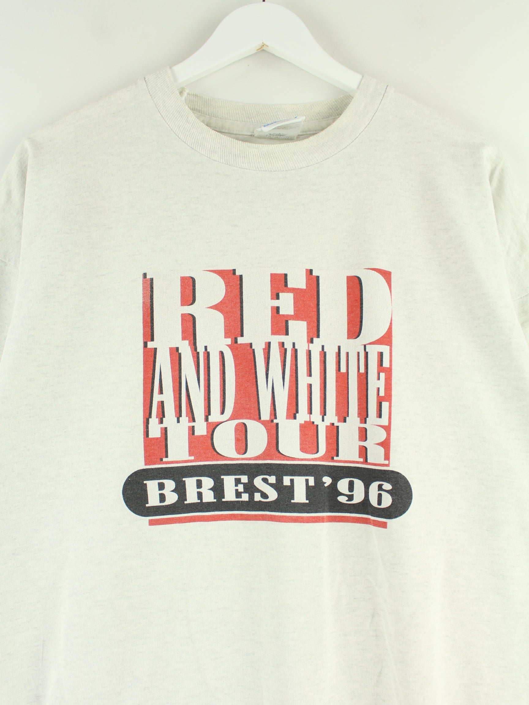 Screen Stars 1996 Vintage Brest Print Single Stitched T-Shirt Grey XL