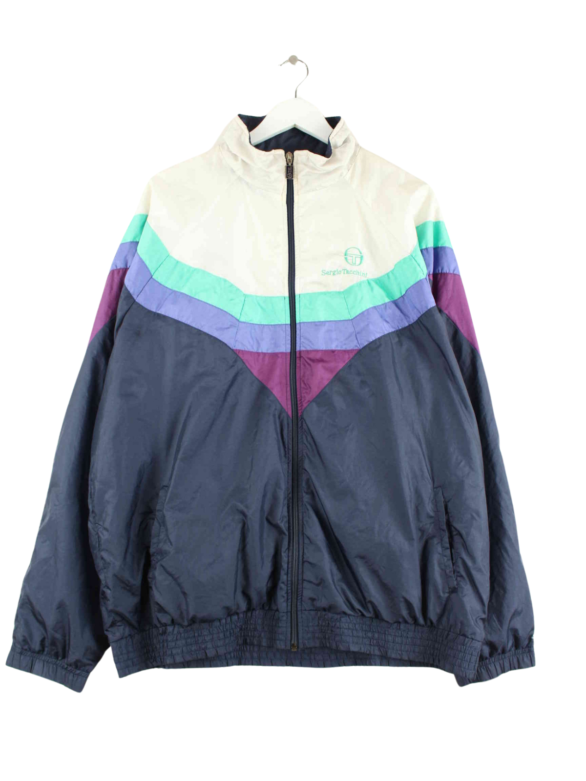 Blue tracksuit jacket by Sergio Tacchini from the 90's in size XL. It is made of synthetic material and is available from us in very good condition.