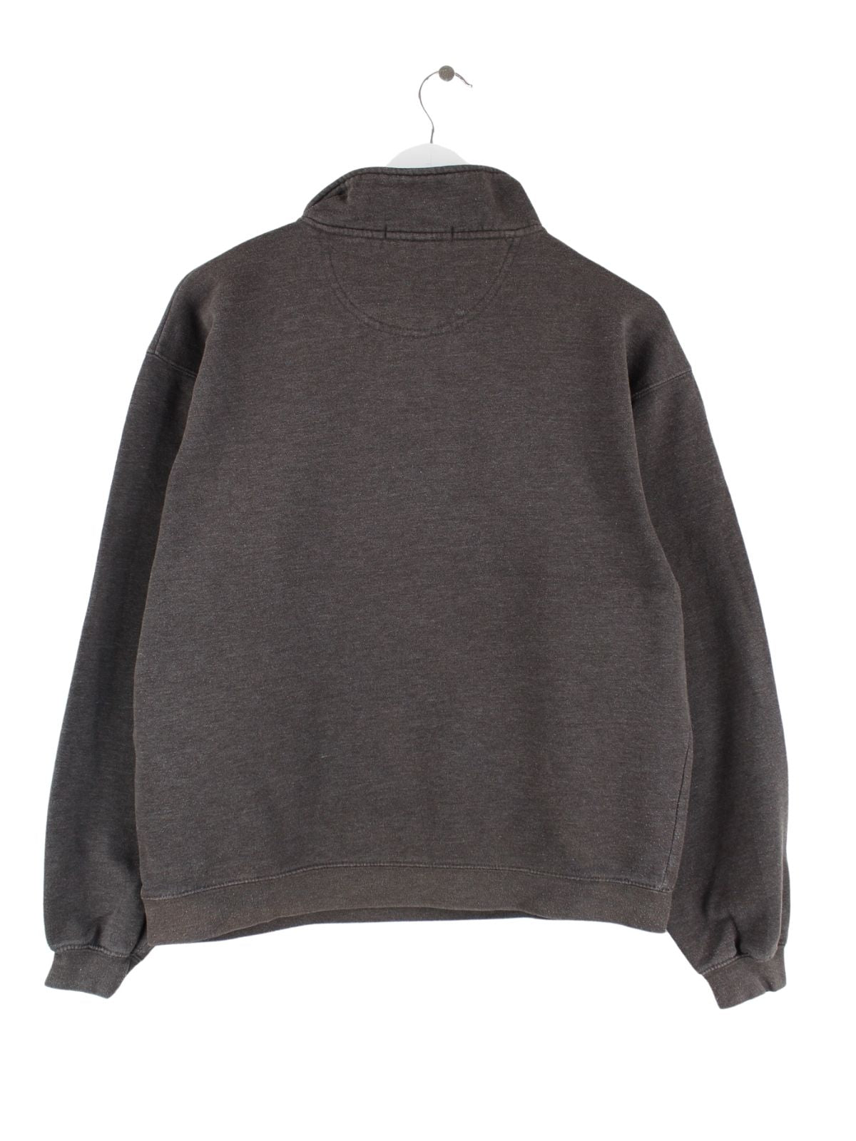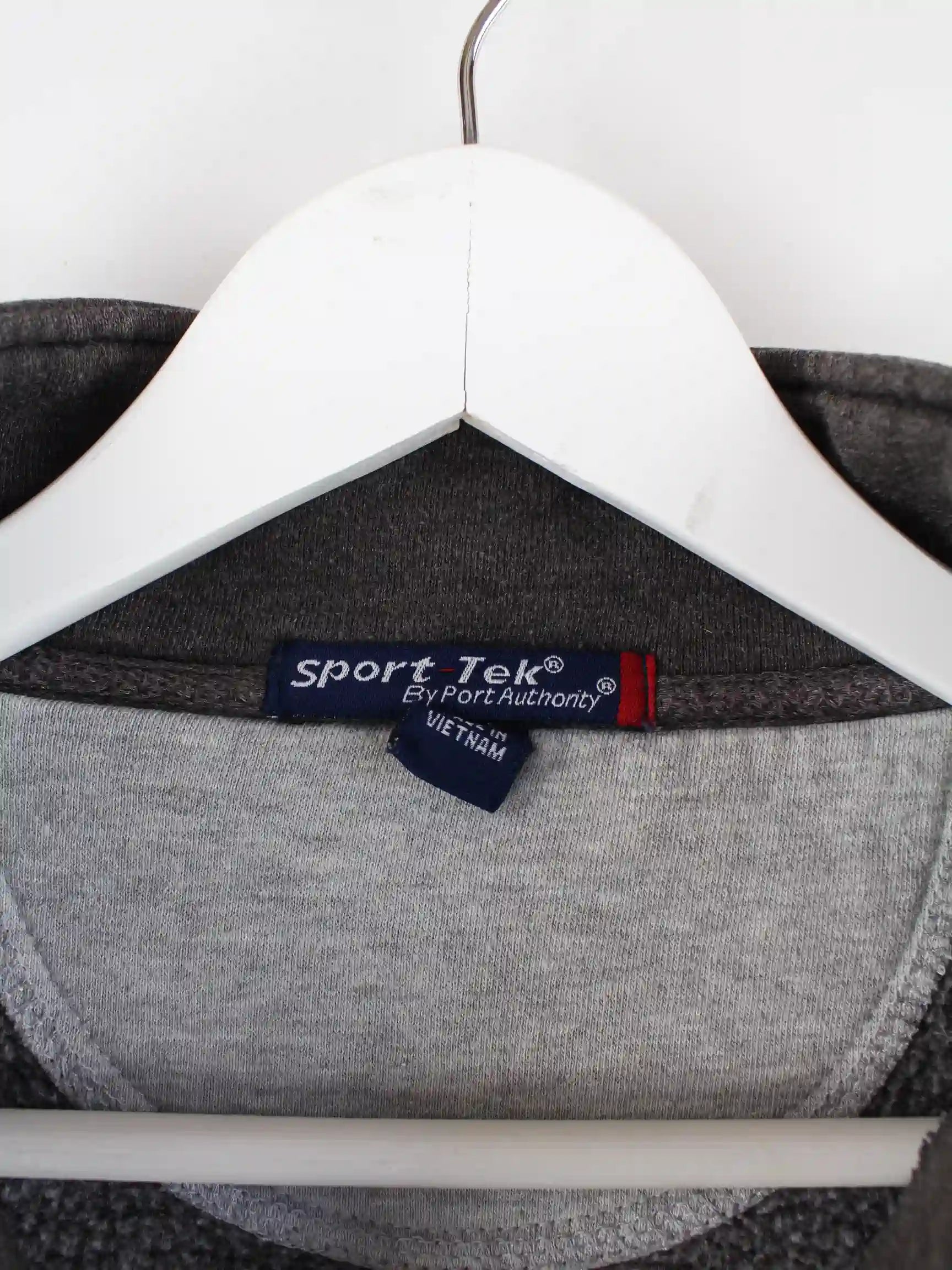 Brauner Sweater mit gesticktem Logo und kurzem Reißverschluß der Marke Sport Tek in Größe S. Er ist aus einer Baumwollmischung produziert und in sehr gutem Zustand in Stock.