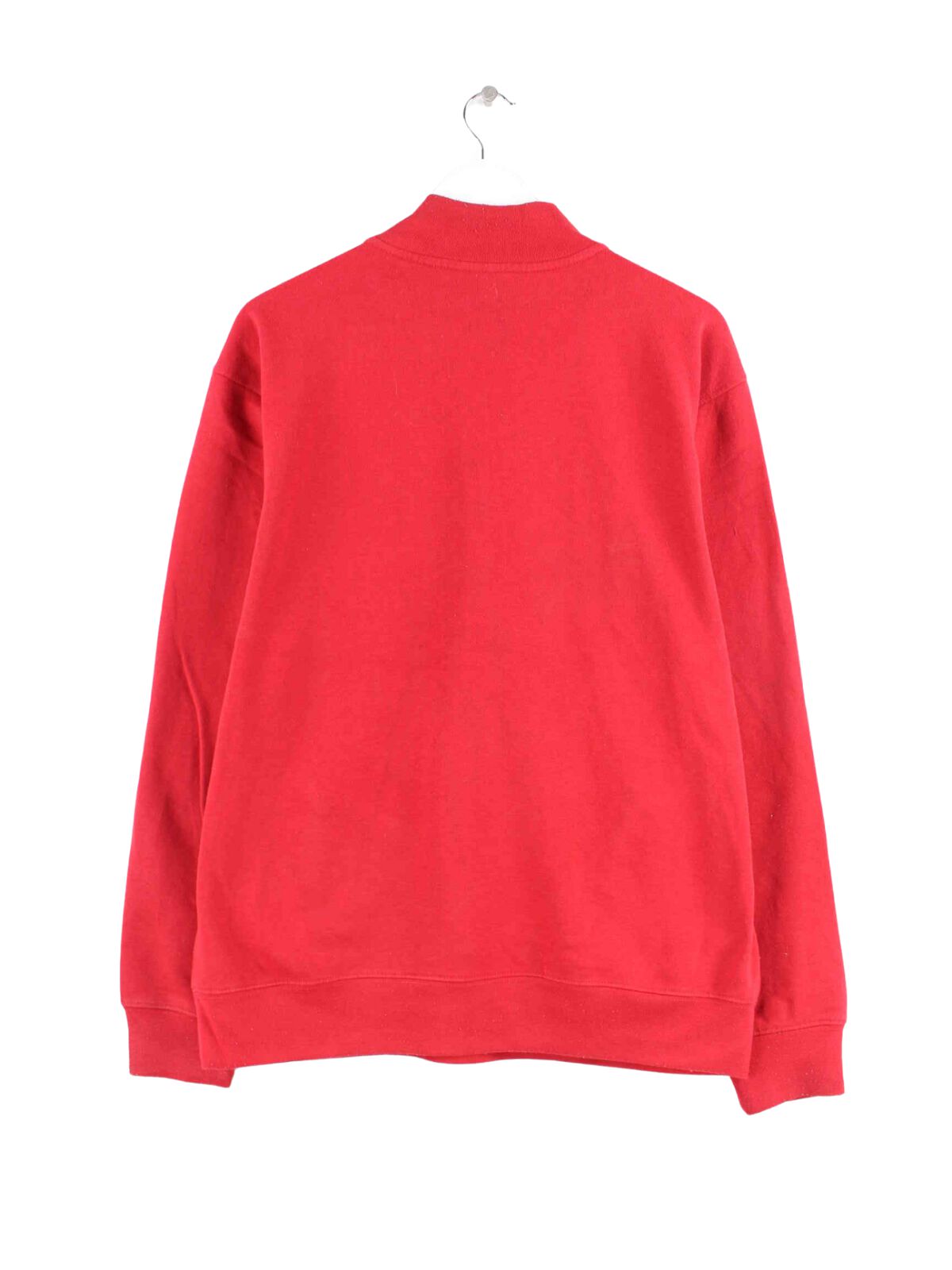 Sweater from the Stadium label with embroidered motifs and a short zipper in size L. It is made from a cotton blend and is available in red.