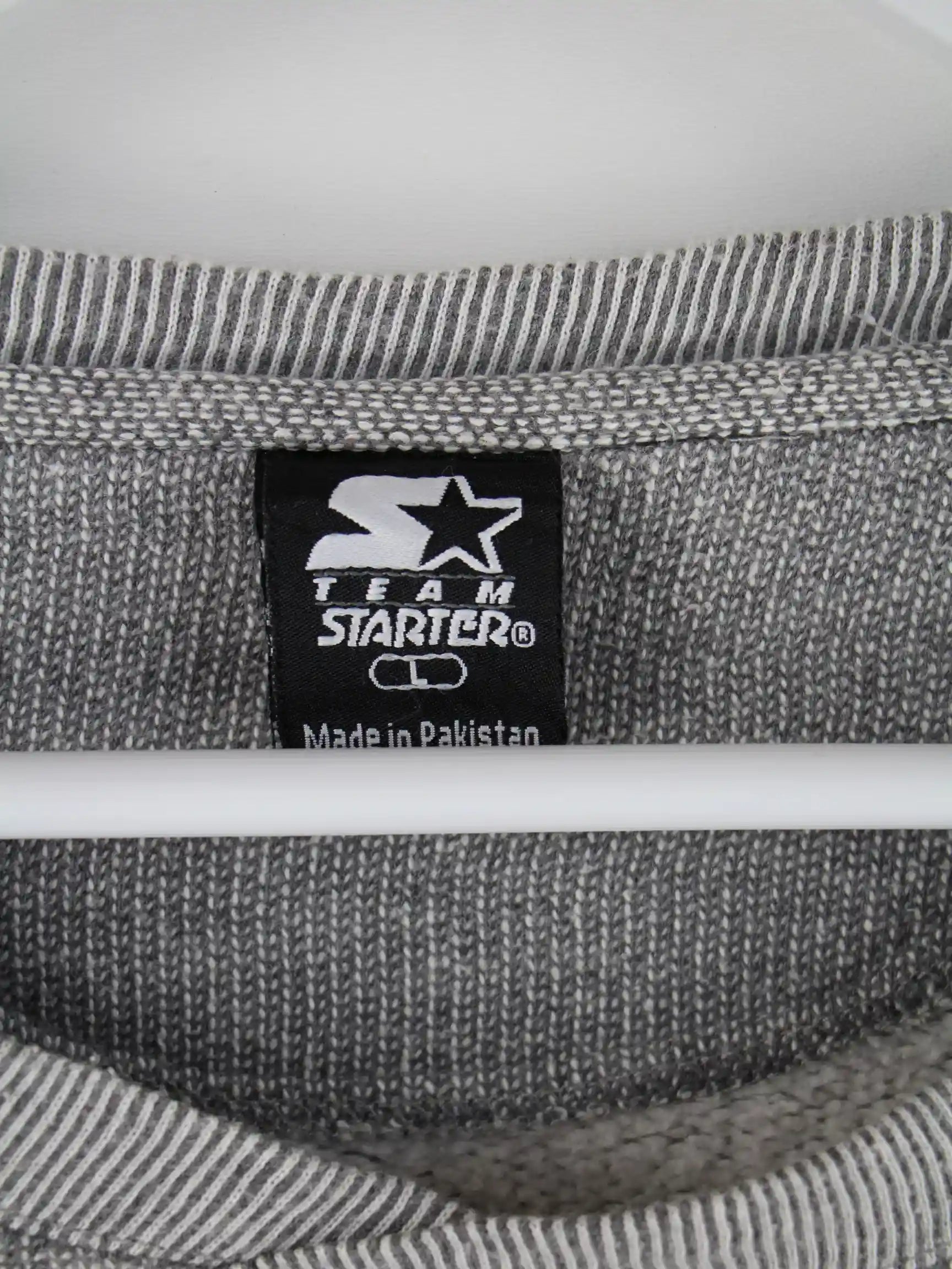 Sweater von Starter in Größe L aus den 90'ern. Er ist aus einer Baumwollmischung hergestellt und in Grau in Stock.