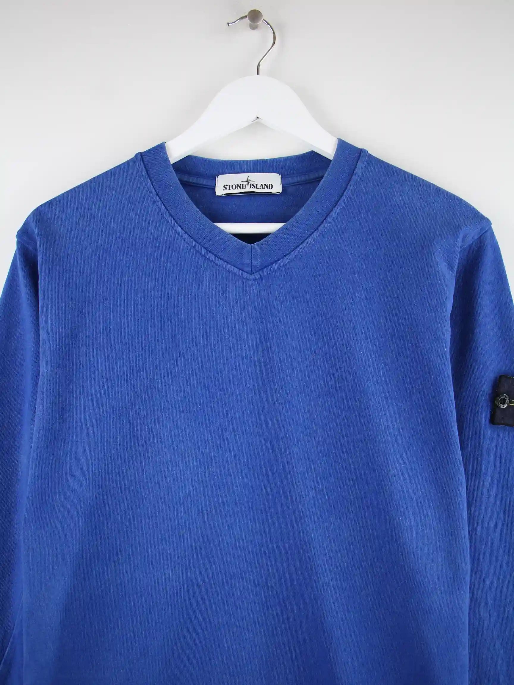 Sweater des Labels Stone Island in Größe M aus den 90'ern. Er ist aus einer Baumwollmischung produziert und in Blau auf Lager.