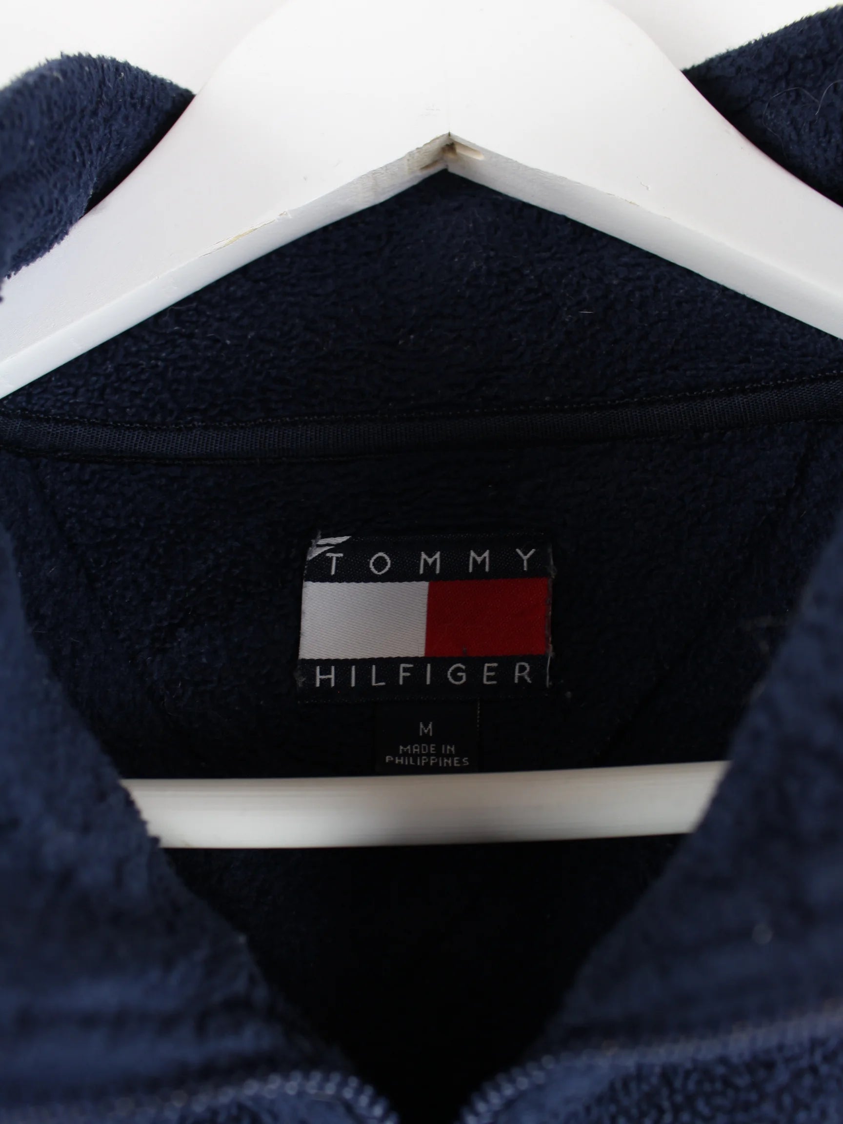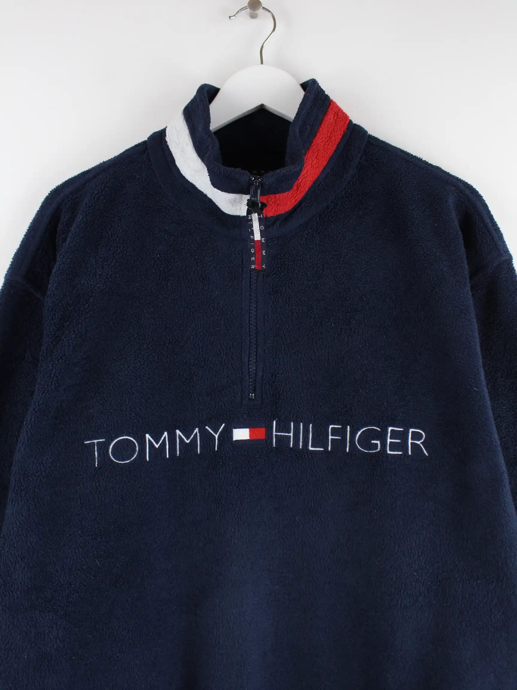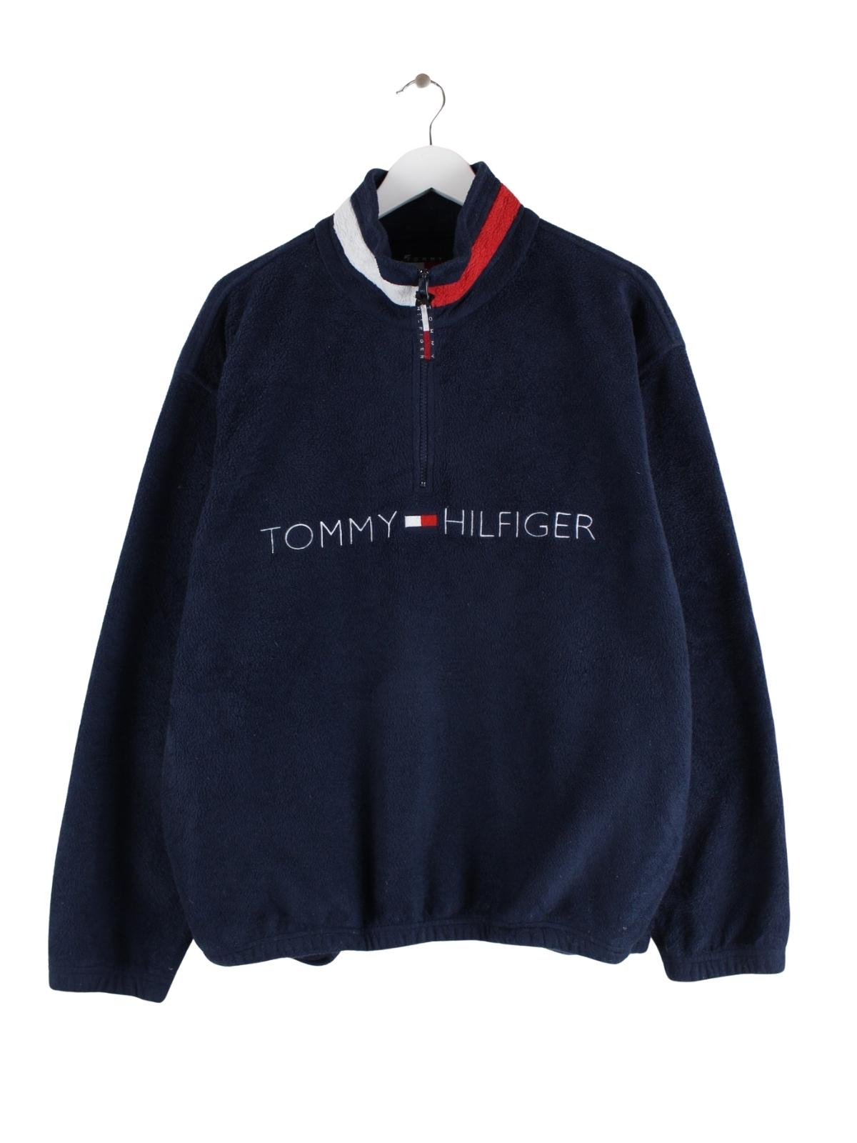 Tommy Hilfiger 90s Vintage Big Logo Half Zip Fleece Jacke Blau M