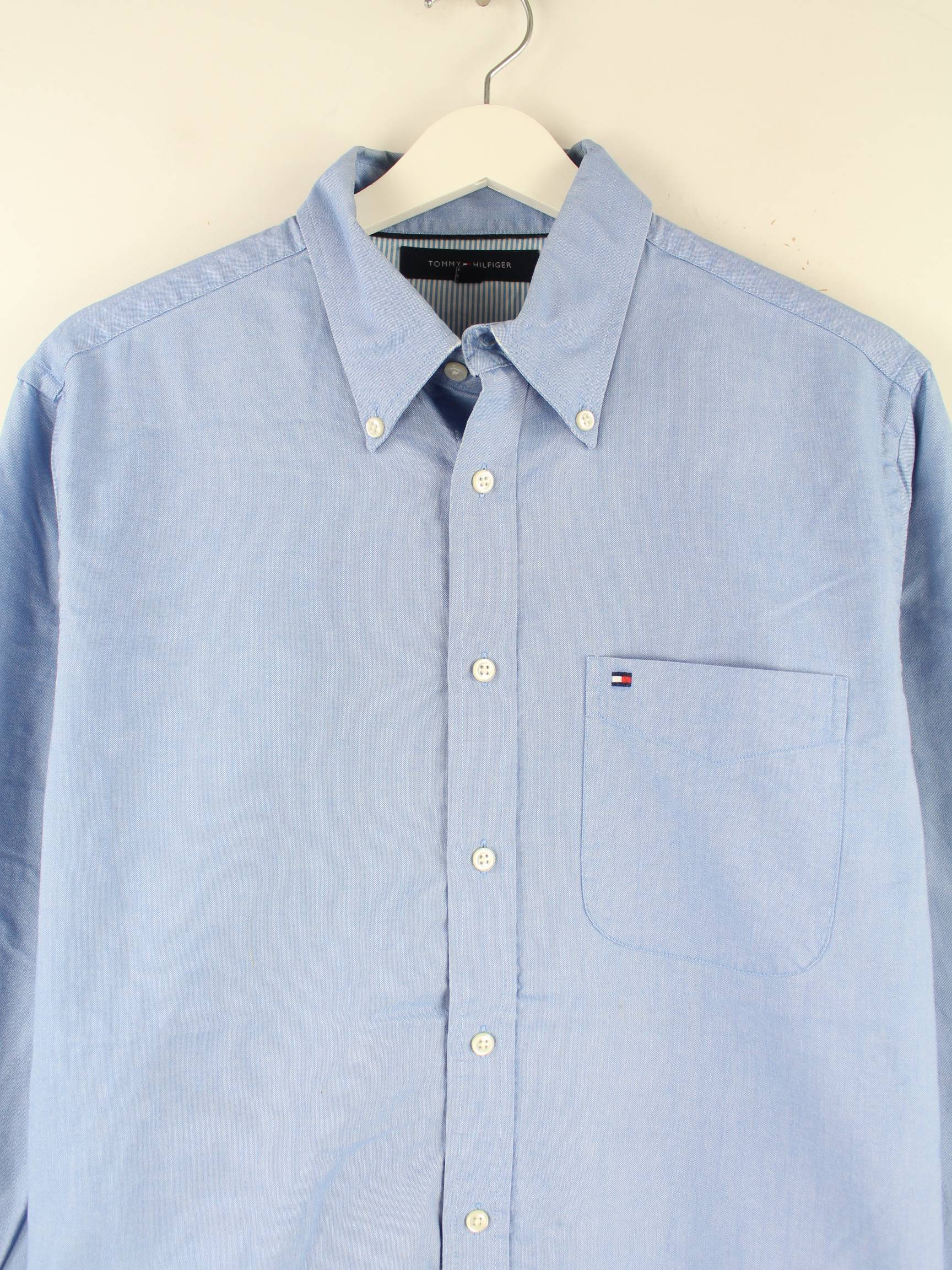 Blaues Hemd der Brand Tommy Hilfiger in Größe M. Es ist aus einer Baumwollmischung hergestellt und in sehr gutem Zustand zu haben.