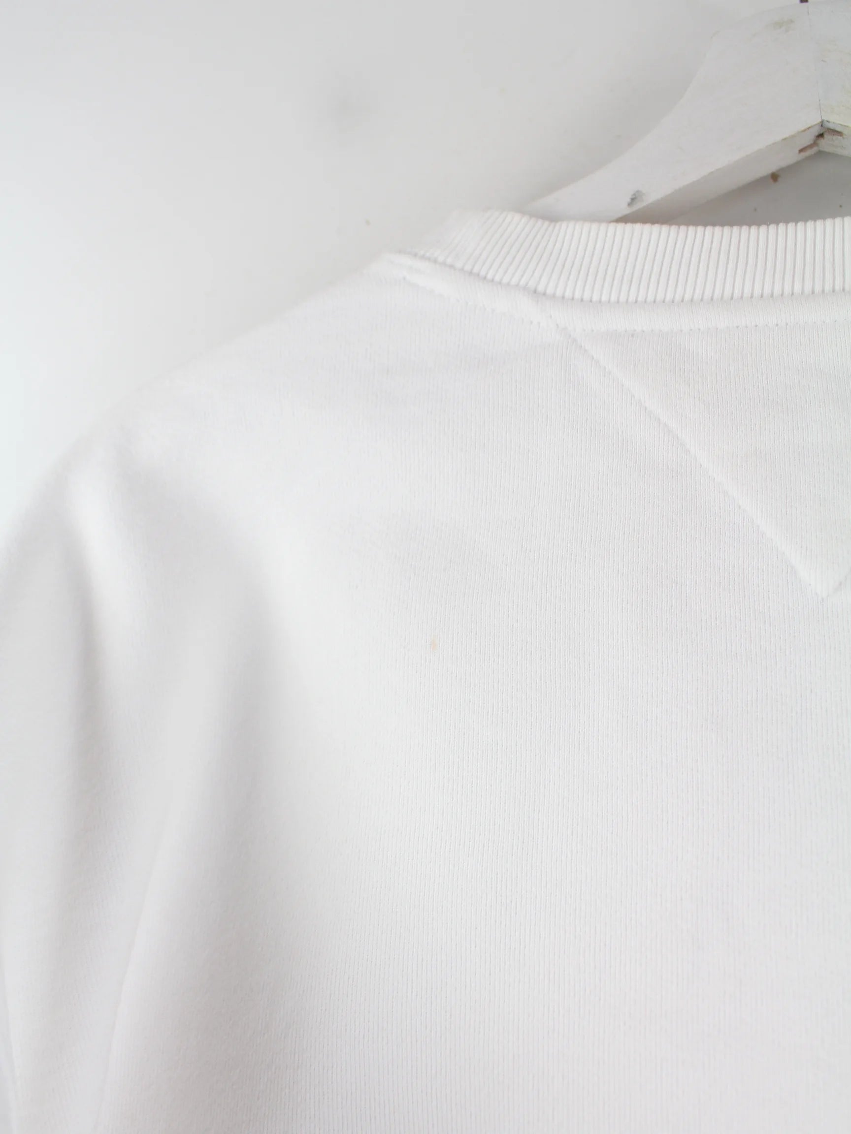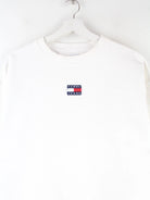 Weißer Sweater mit Stick der Brand Tommy Hilfiger in Größe L. Er ist aus einer Baumwollmischung gemacht. Den Zustand würden wir als 'In Ordnung' bezeichnen (vergl. Bilder).