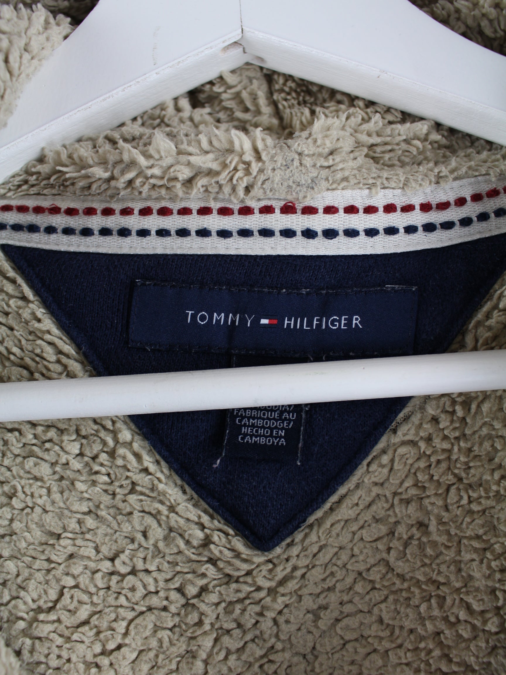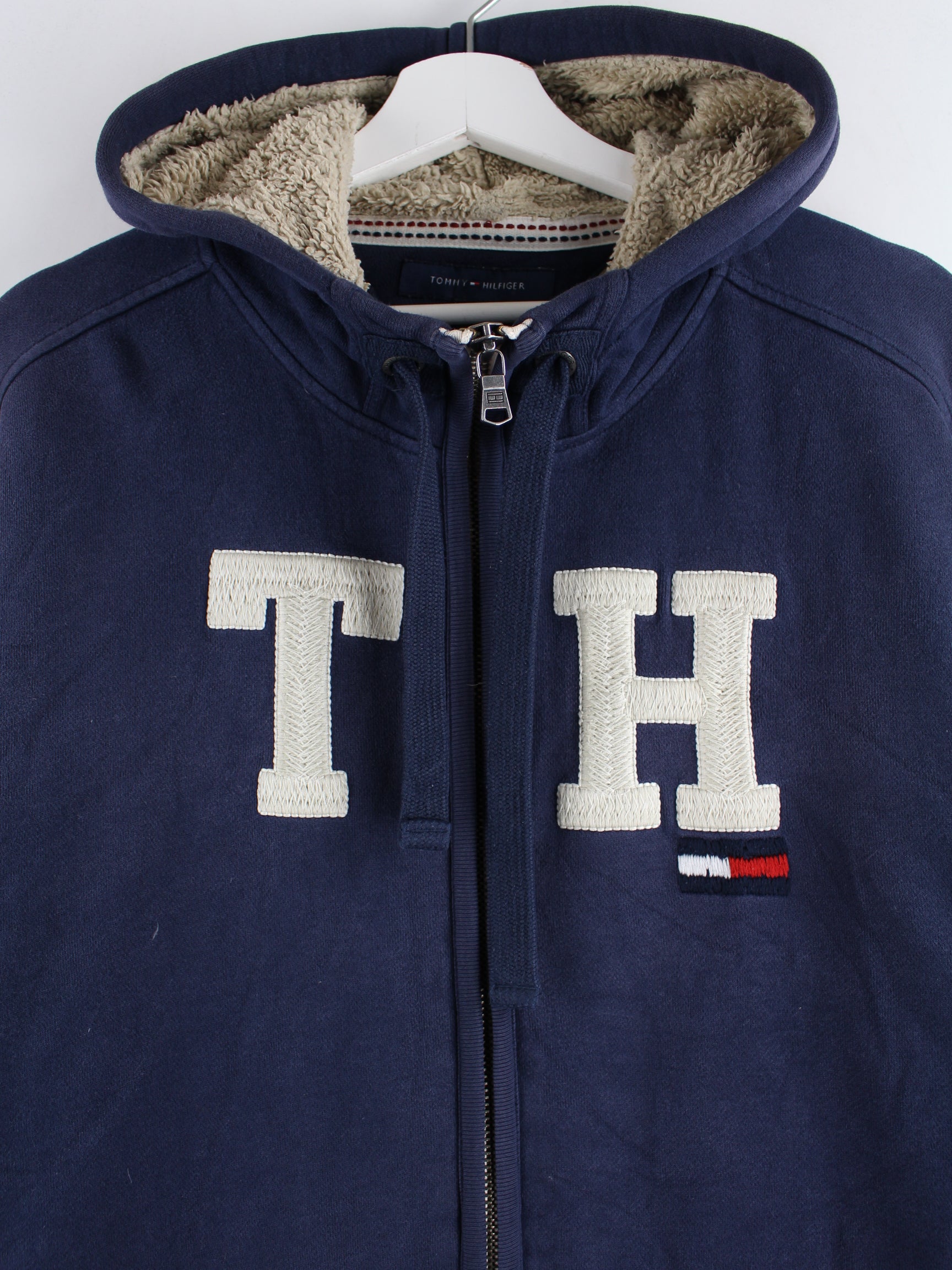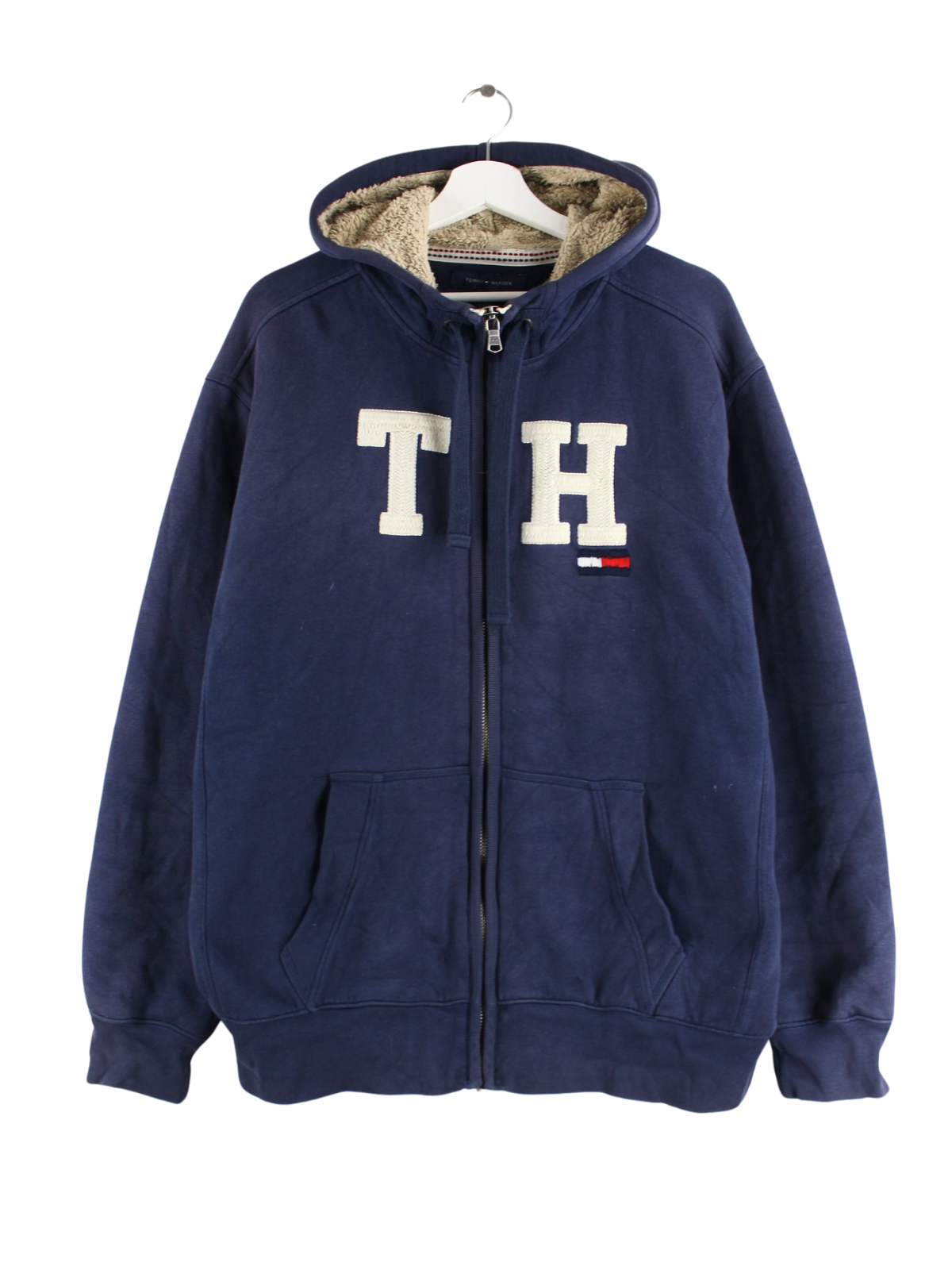 Blauer Hoodie mit Stick und Zip vom Brand Tommy Hilfiger in Größe XL. Er ist aus einer Baumwollmischung produziert und in gutem Zustand auf Lager.