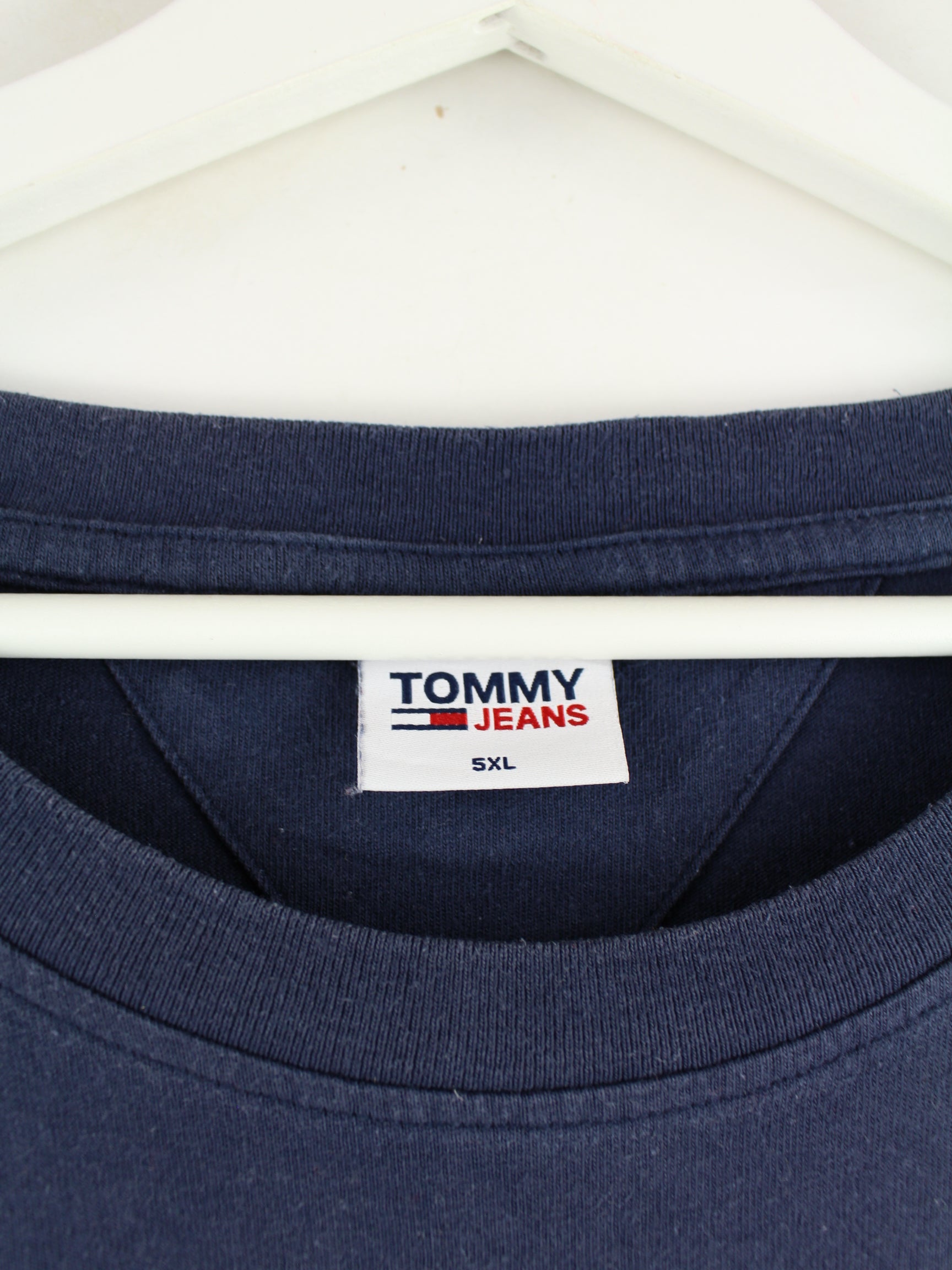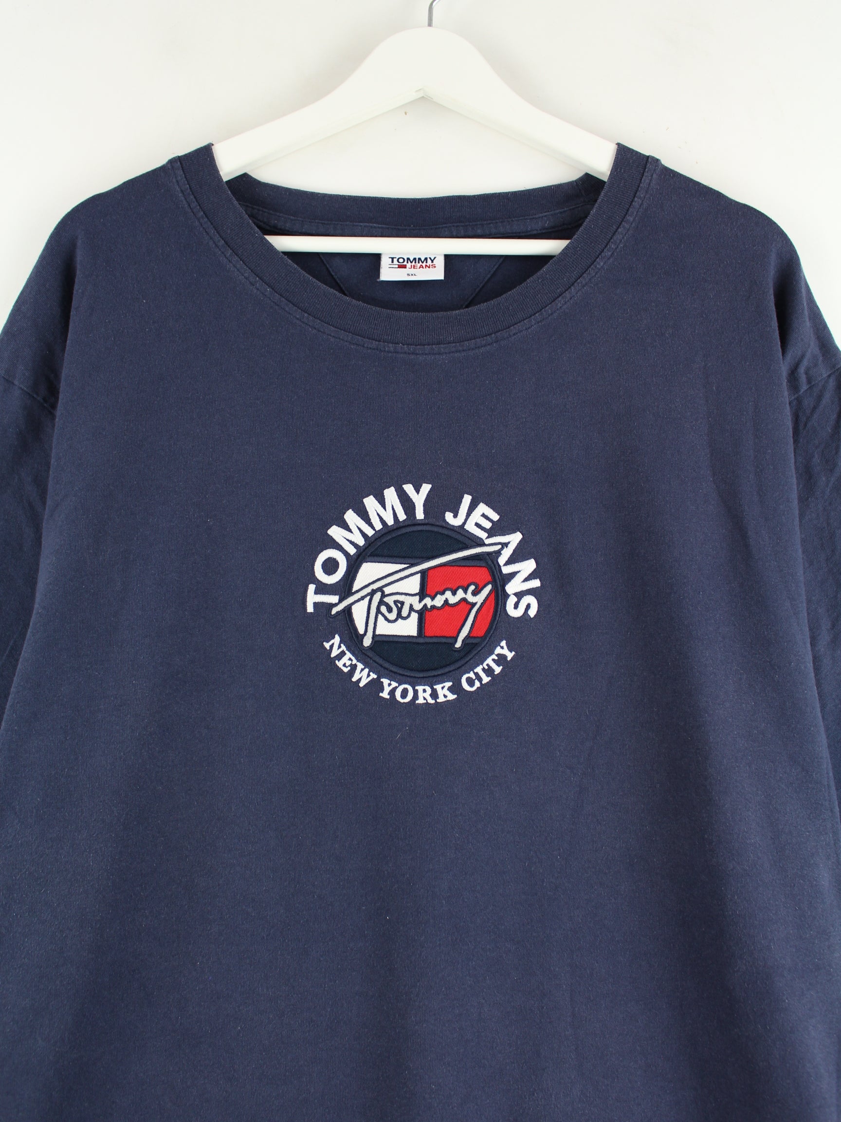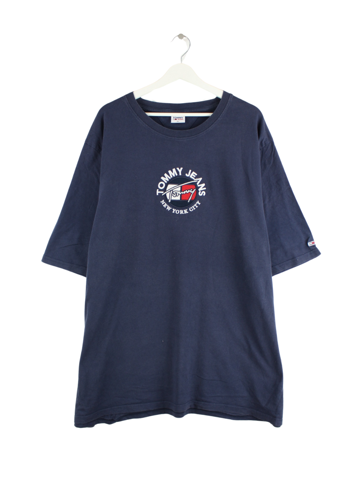Tommy Hilfiger brand T-shirt with embroidered logo in size 5XL. It is made of cotton and available in blue.