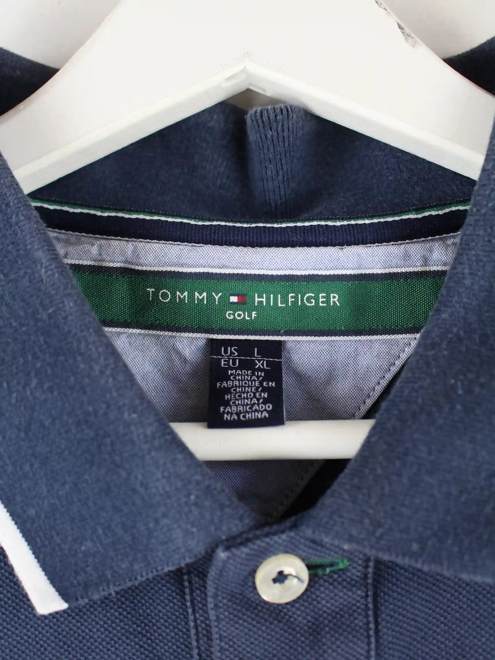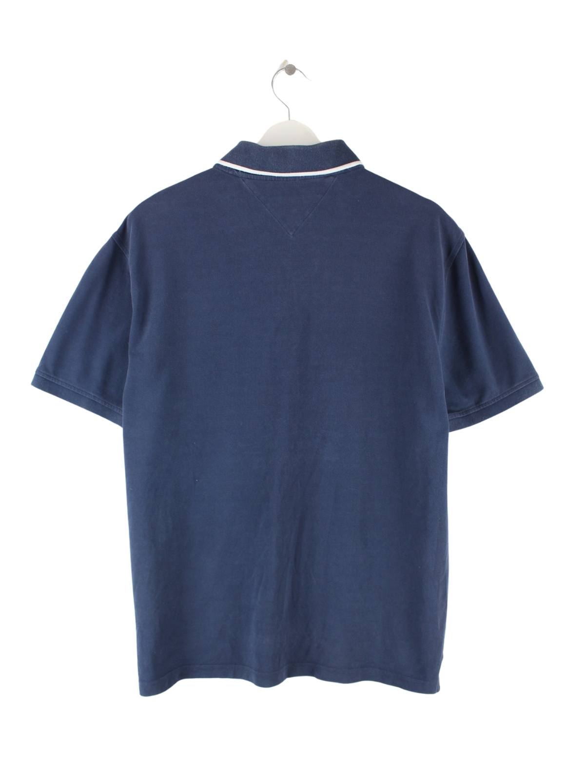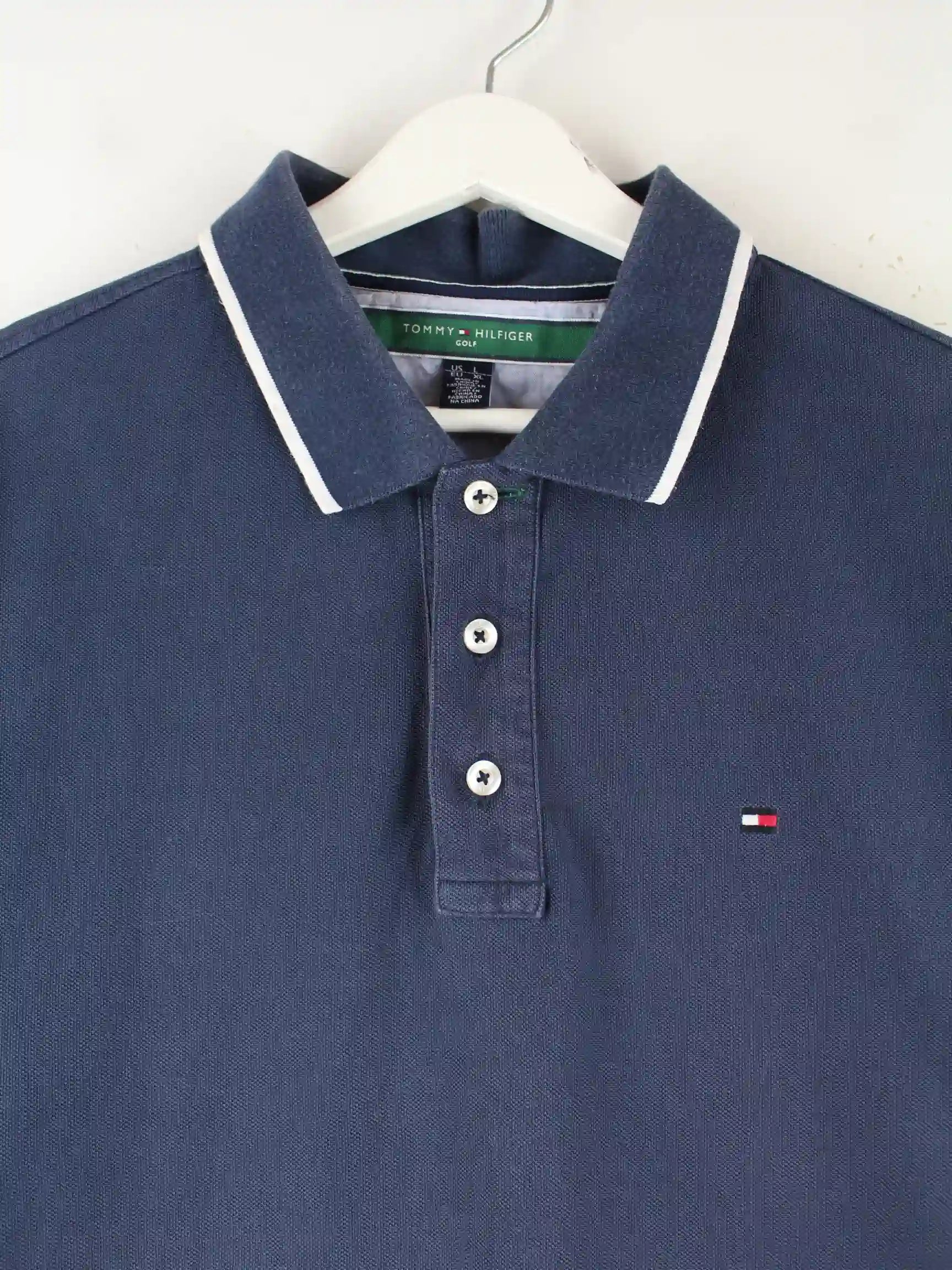 Poloshirt der Marke Tommy Hilfiger in Größe XL. Es ist aus Baumwolle produziert und in Blau vorrätig.
