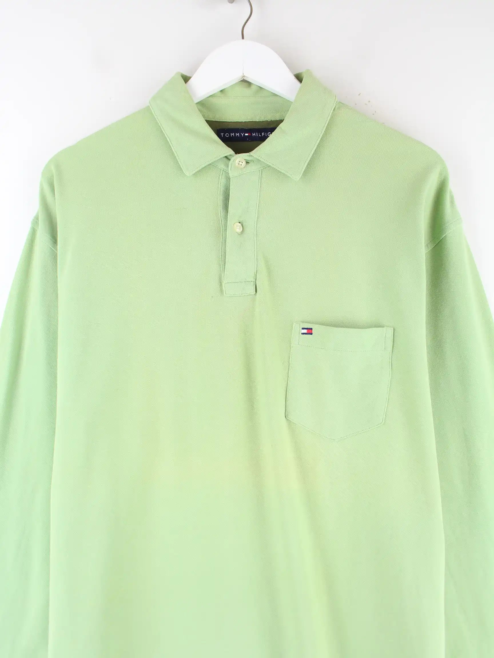 Grünes Poloshirt vom Label Tommy Hilfiger in Größe L. Es ist aus Baumwolle . Den Zustand würden wir als 'In Ordnung' bezeichnen (vergl. Bilder).