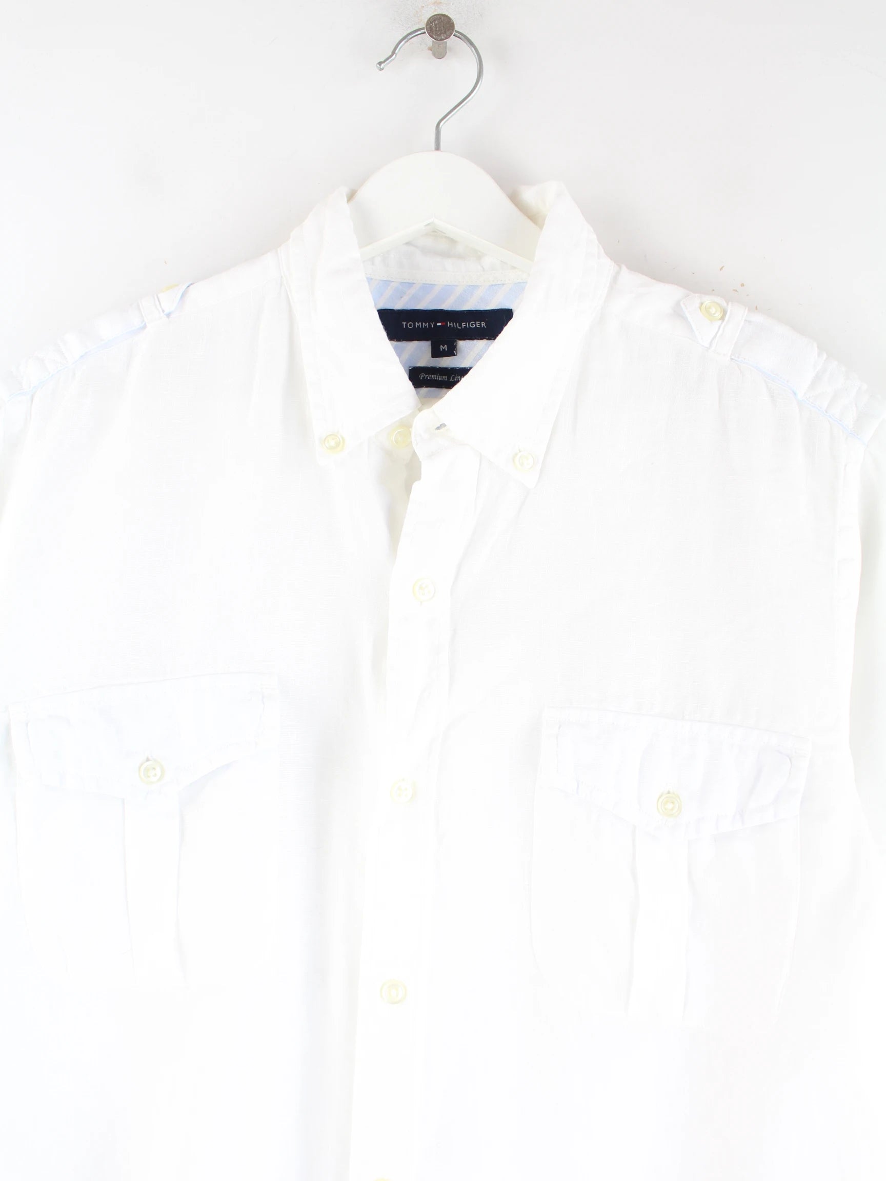 Weißes Freizeit Hemd der Marke Tommy Hilfiger in Größe M. Es ist aus Leinen gemacht und in sehr gutem Zustand zu haben.