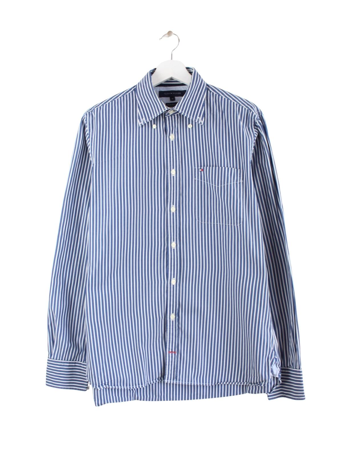 Blaues Hemd des Labels Tommy Hilfiger in Größe M. Es ist aus Baumwolle gefertigt und in sehr gutem Zustand bei uns vorrätig.