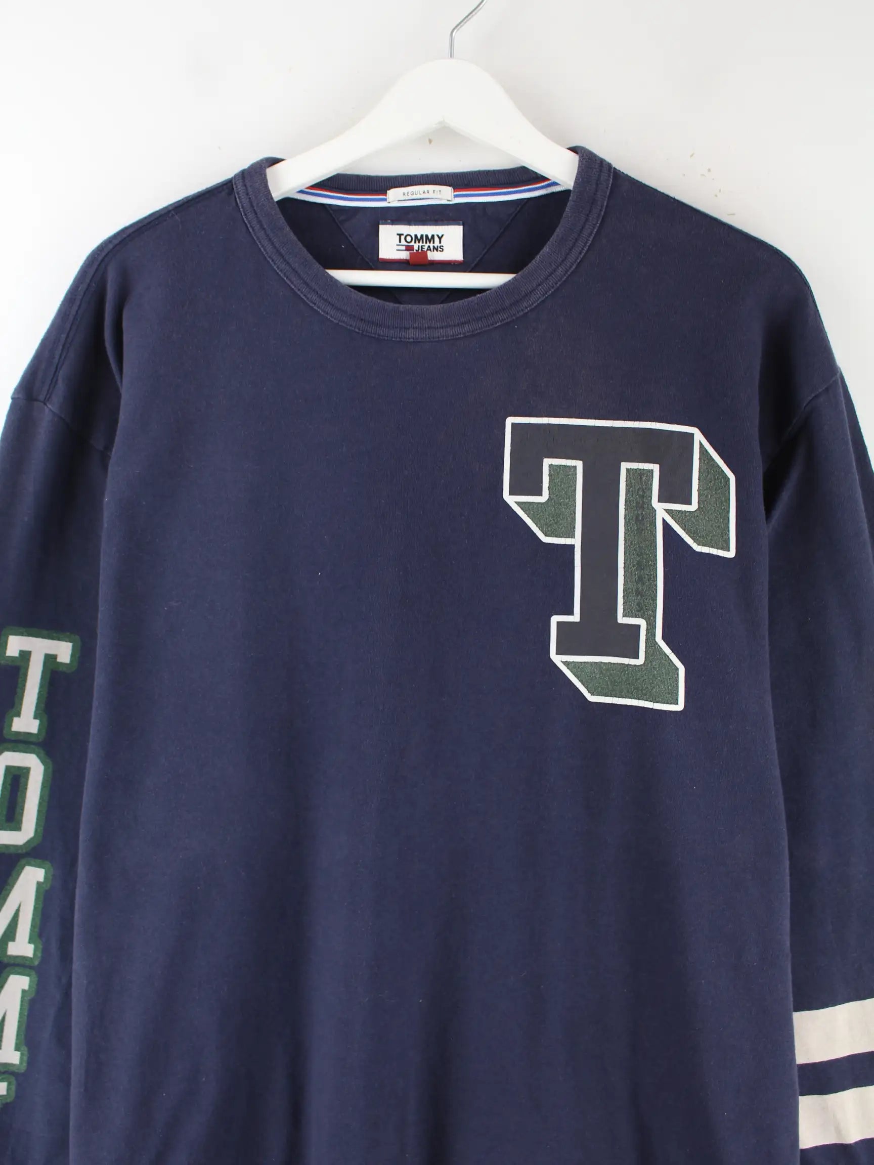 Blaues Sweatshirt der Brand Tommy Hilfiger in Größe XXL. Es ist aus Baumwolle produziert und in gutem Zustand vorrätig. Mit tollem Fit Print.