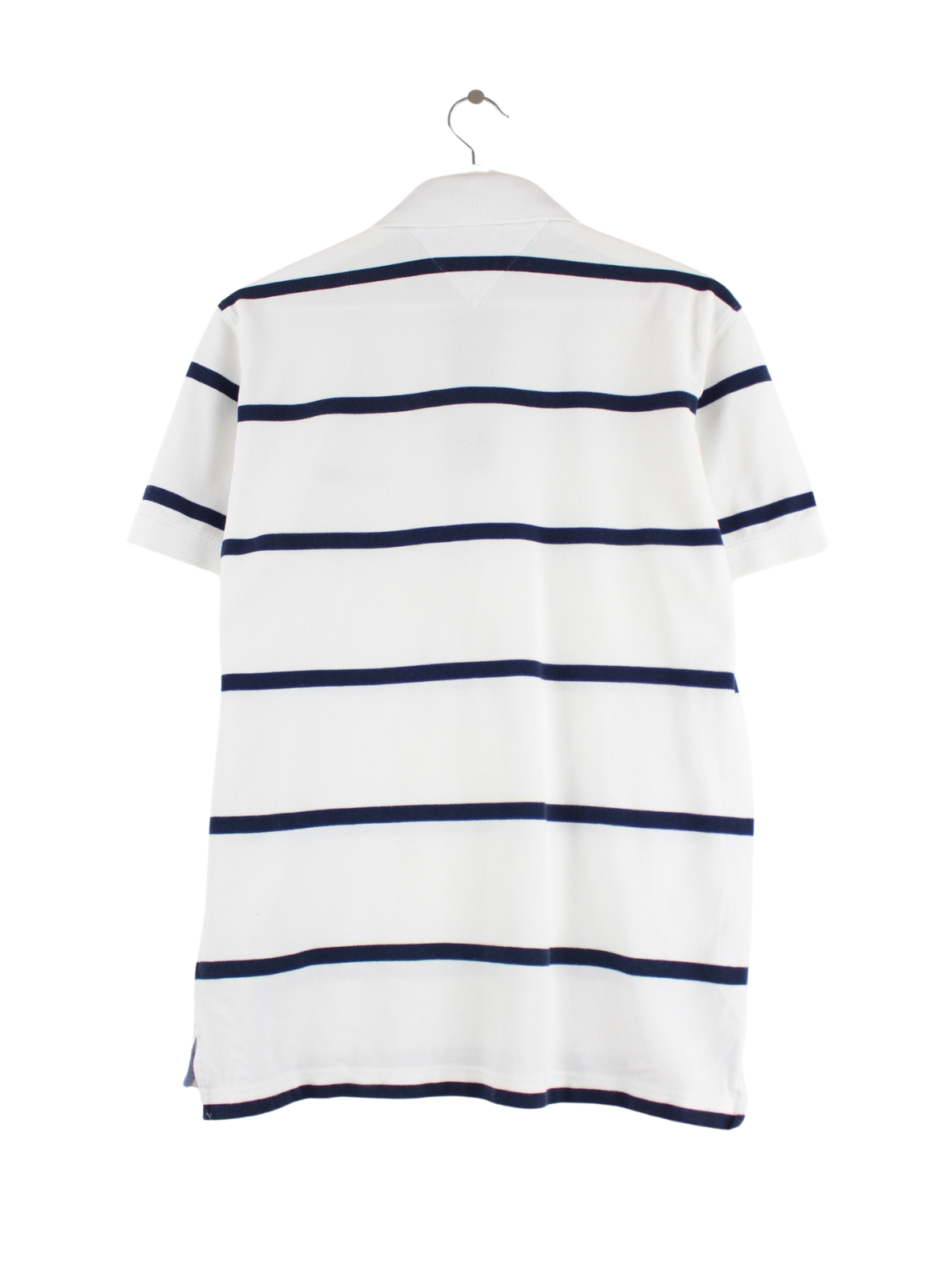 White polo shirt with embroidery from the brand Tommy Hilfiger in size M. It is made of cotton and in good condition in stock.