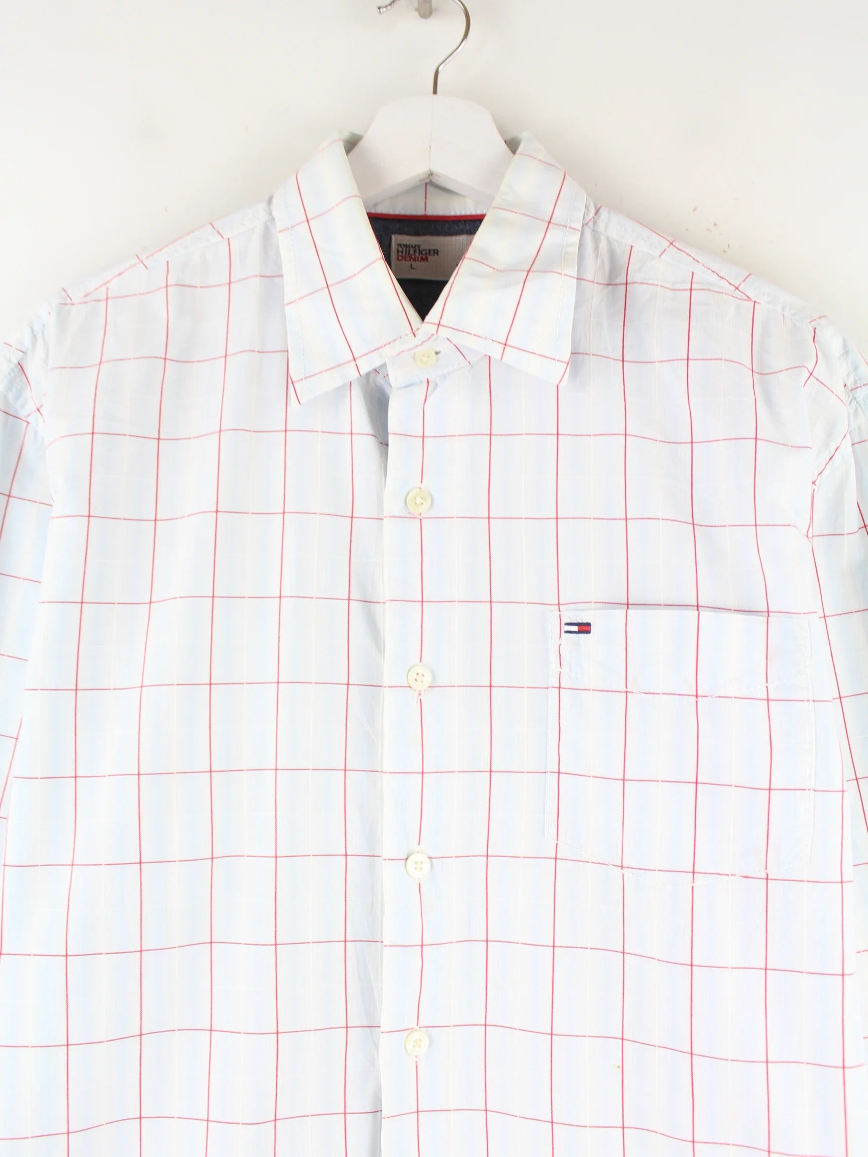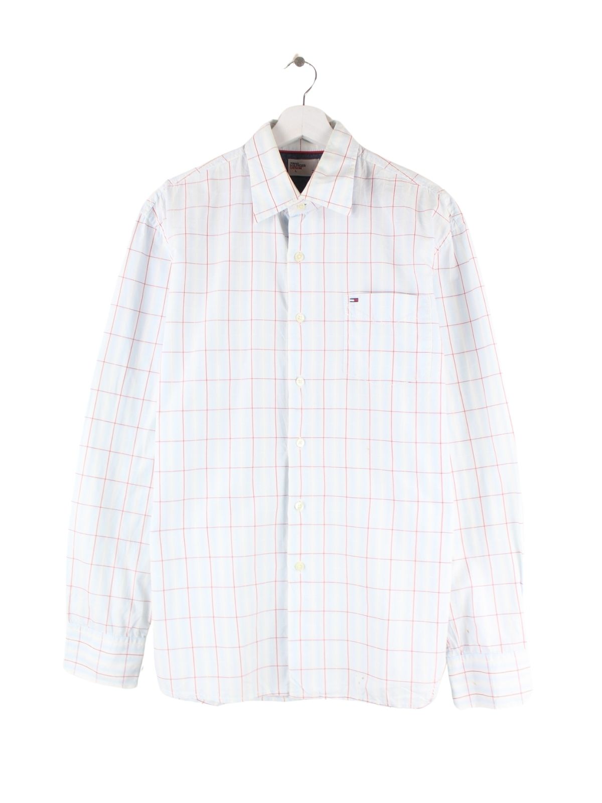 Hemd der Marke Tommy Hilfiger in Größe L. Es ist aus Baumwolle angefertigt und in Weiß bei uns zu bekommen.