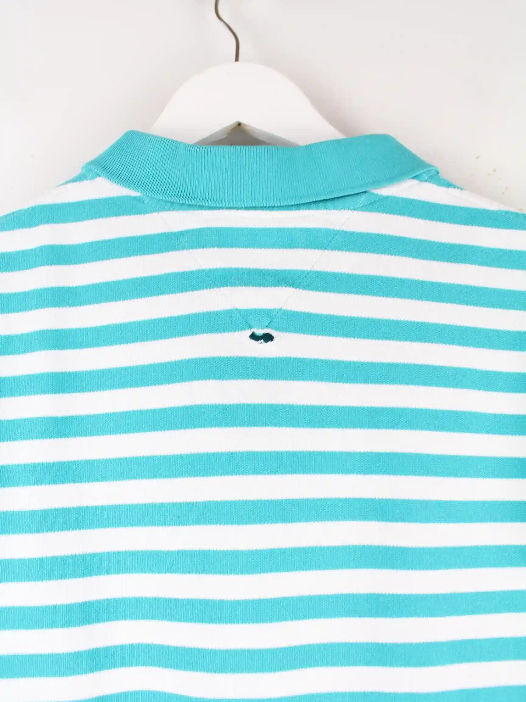 Türkisfarbenes Poloshirt aus dem Hause Tommy Hilfiger in Größe XXL. Es ist aus einer Baumwollmischung . Den Zustand würden wir als 'In Ordnung' bezeichnen (vergl. Bilder).