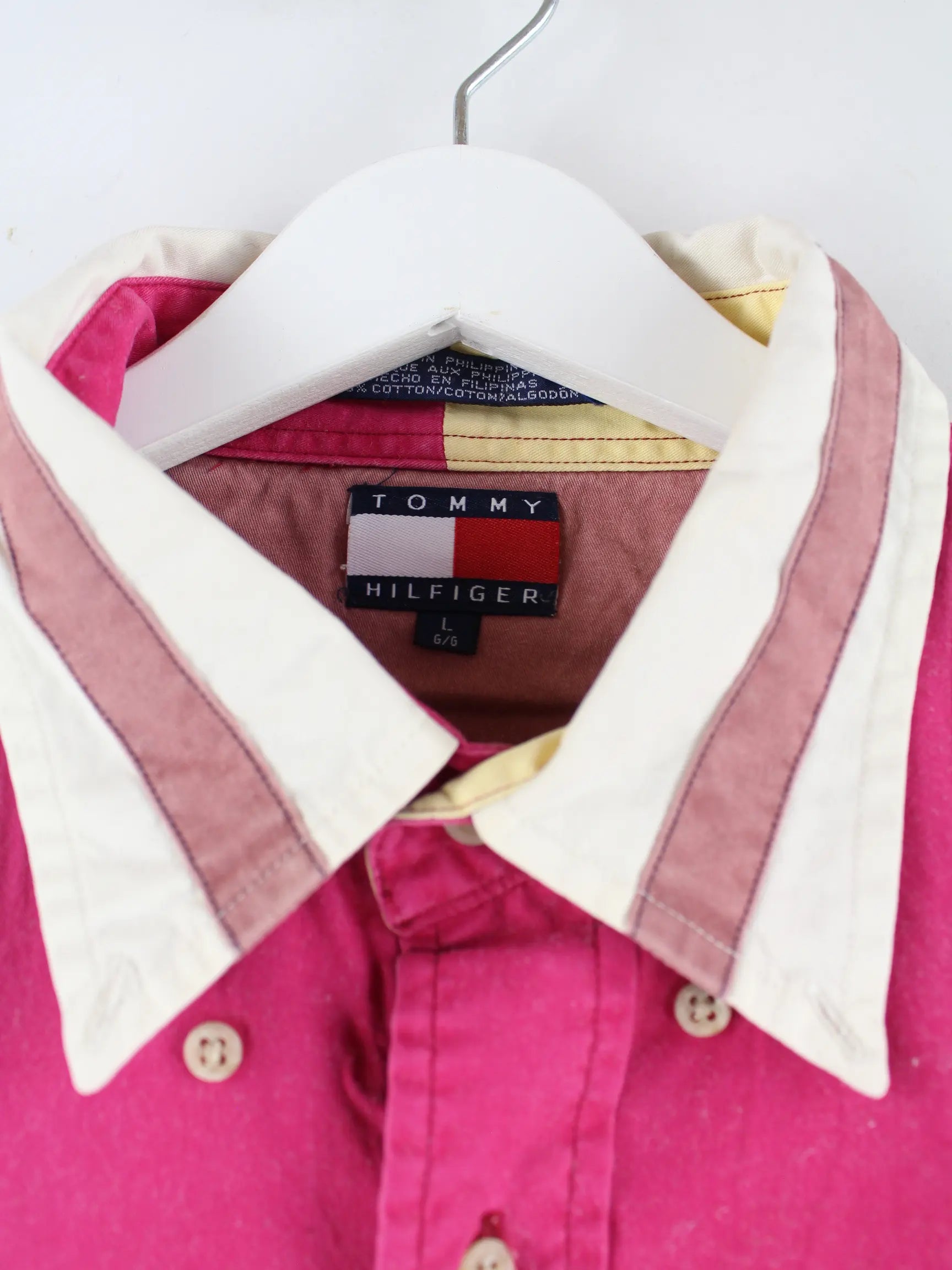 Freizeit Hemd von Tommy Hilfiger mit Stickereien in Größe L aus Anfang der 2000'er. Es ist aus Baumwolle gefertigt und in Rot in Stock.