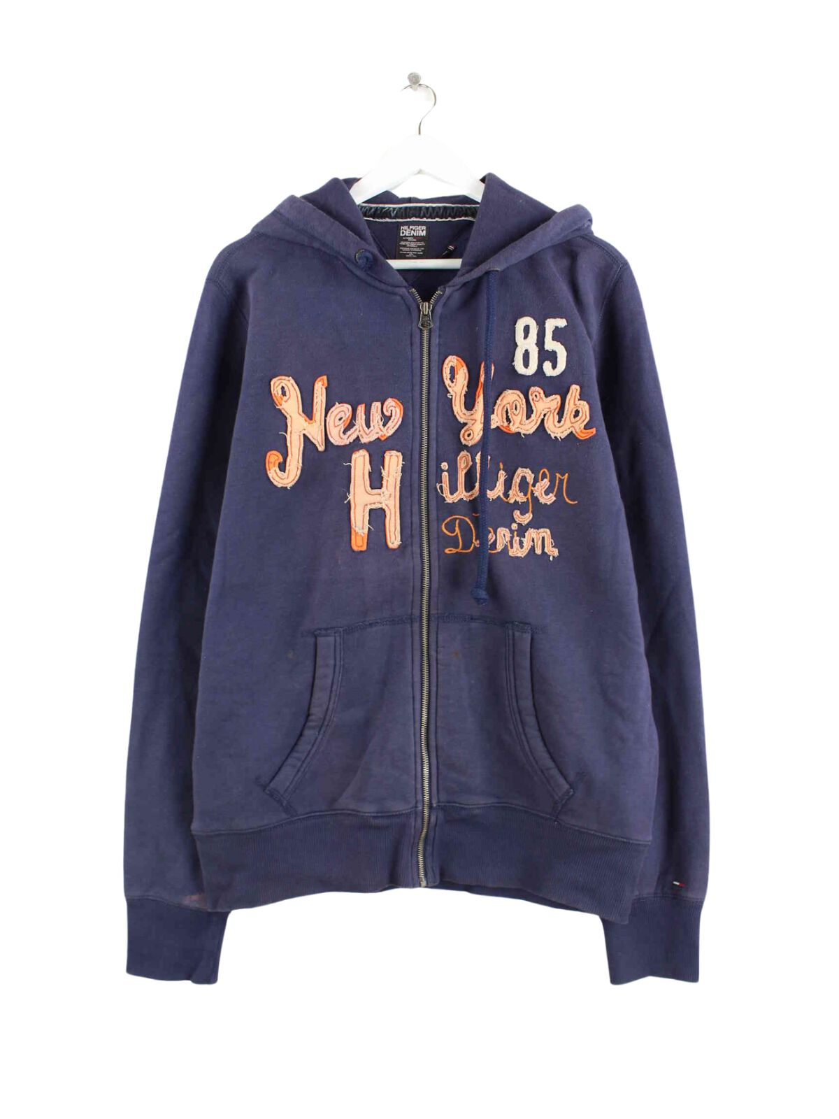 Blue hoodie with zipper from Tommy Hilfiger in size XL. It is made from a cotton blend. We would describe the condition as 'OK' (see pictures).
