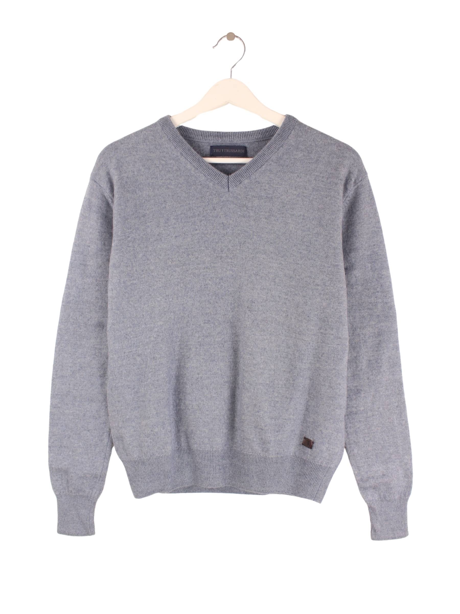 Pullover der Marke Trussardi in Größe L. Er ist aus einer Wollmischung gemacht und in Blau im Angebot.