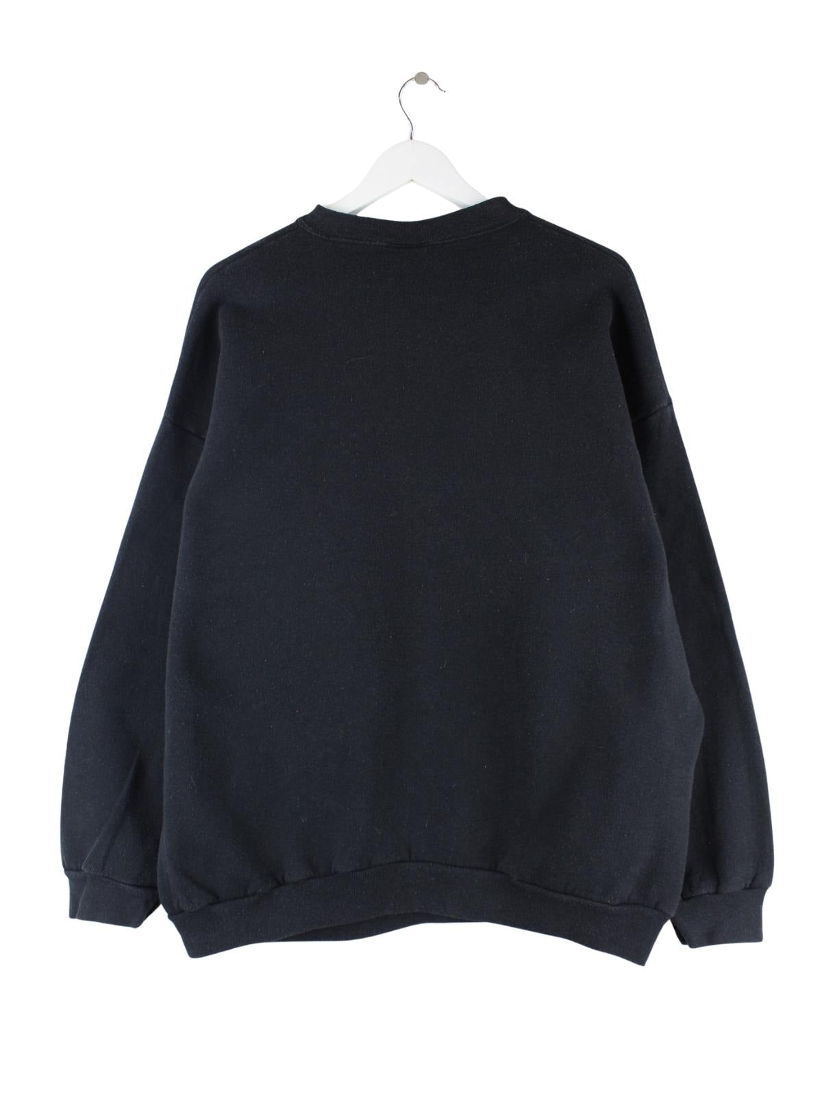 Schwarzer Sweater mit gestickten Motiven der Brand Tultex aus den 90'ern in Größe XXL. Er ist aus einer Baumwollmischung gemacht und in gutem Zustand bei uns vorrätig.