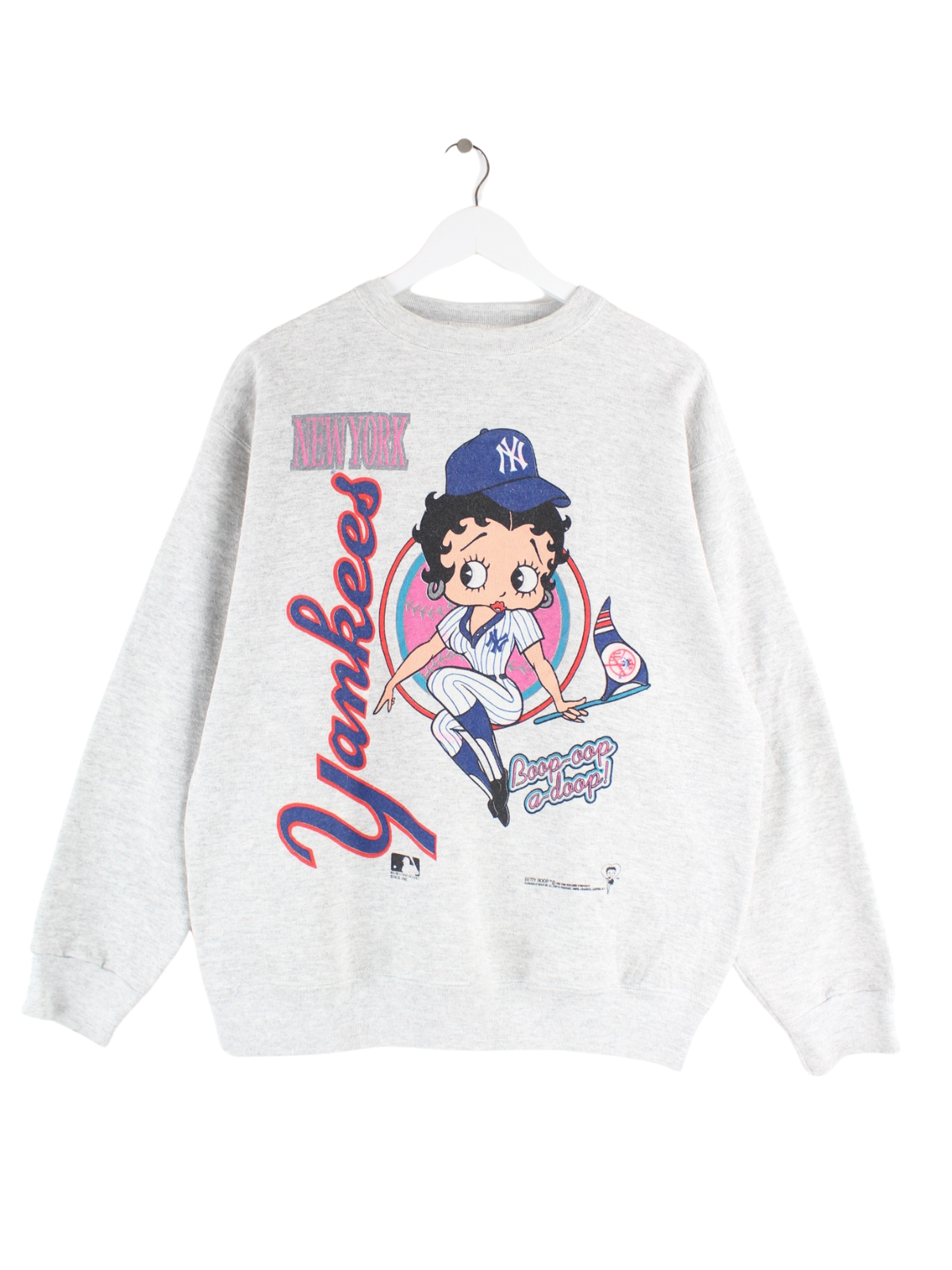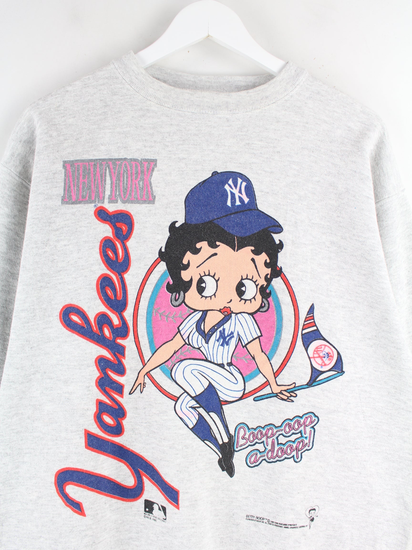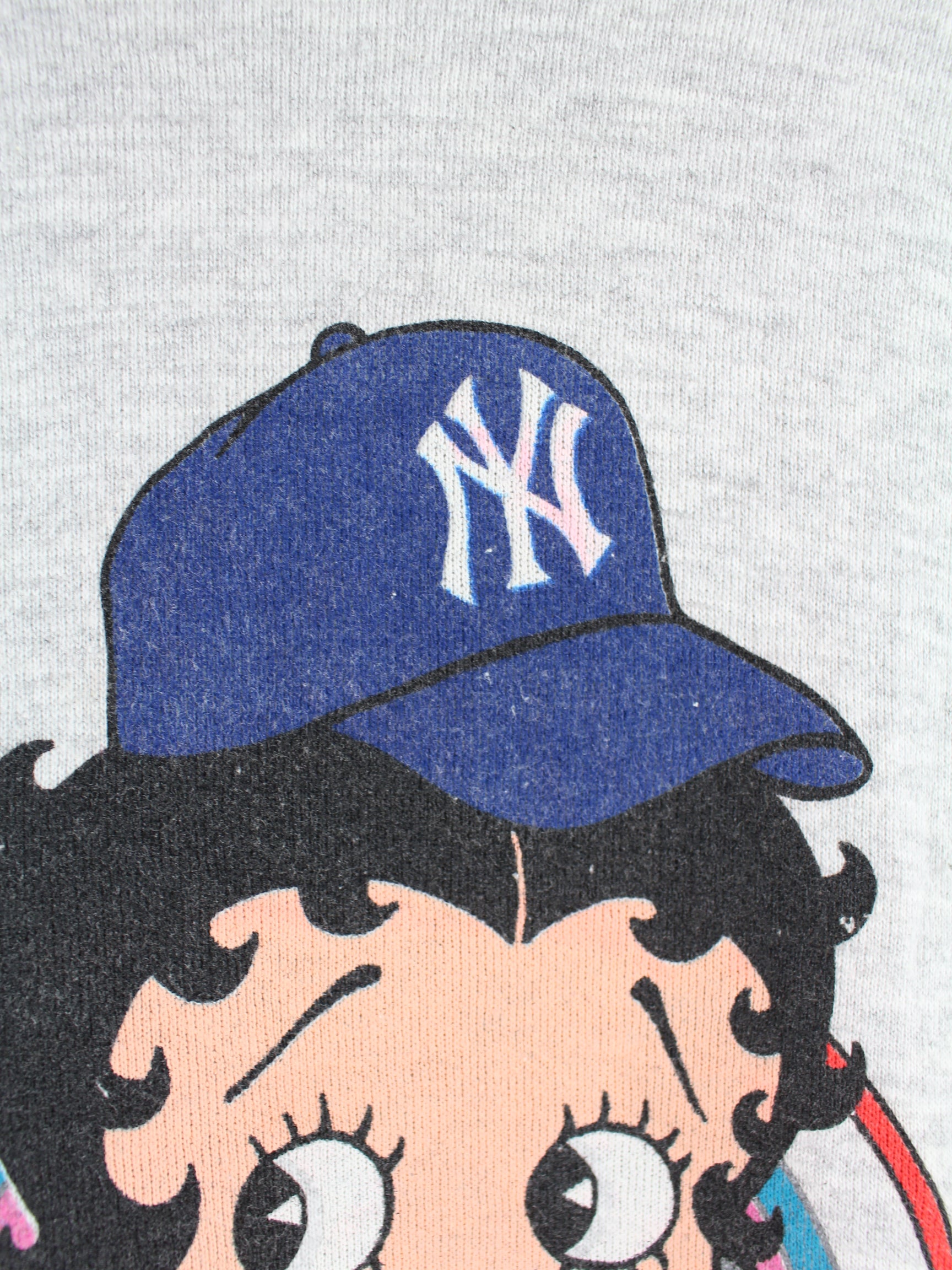 Tultex 90s Vintage NY Yankees Betty Boop Print Sweater Gray L