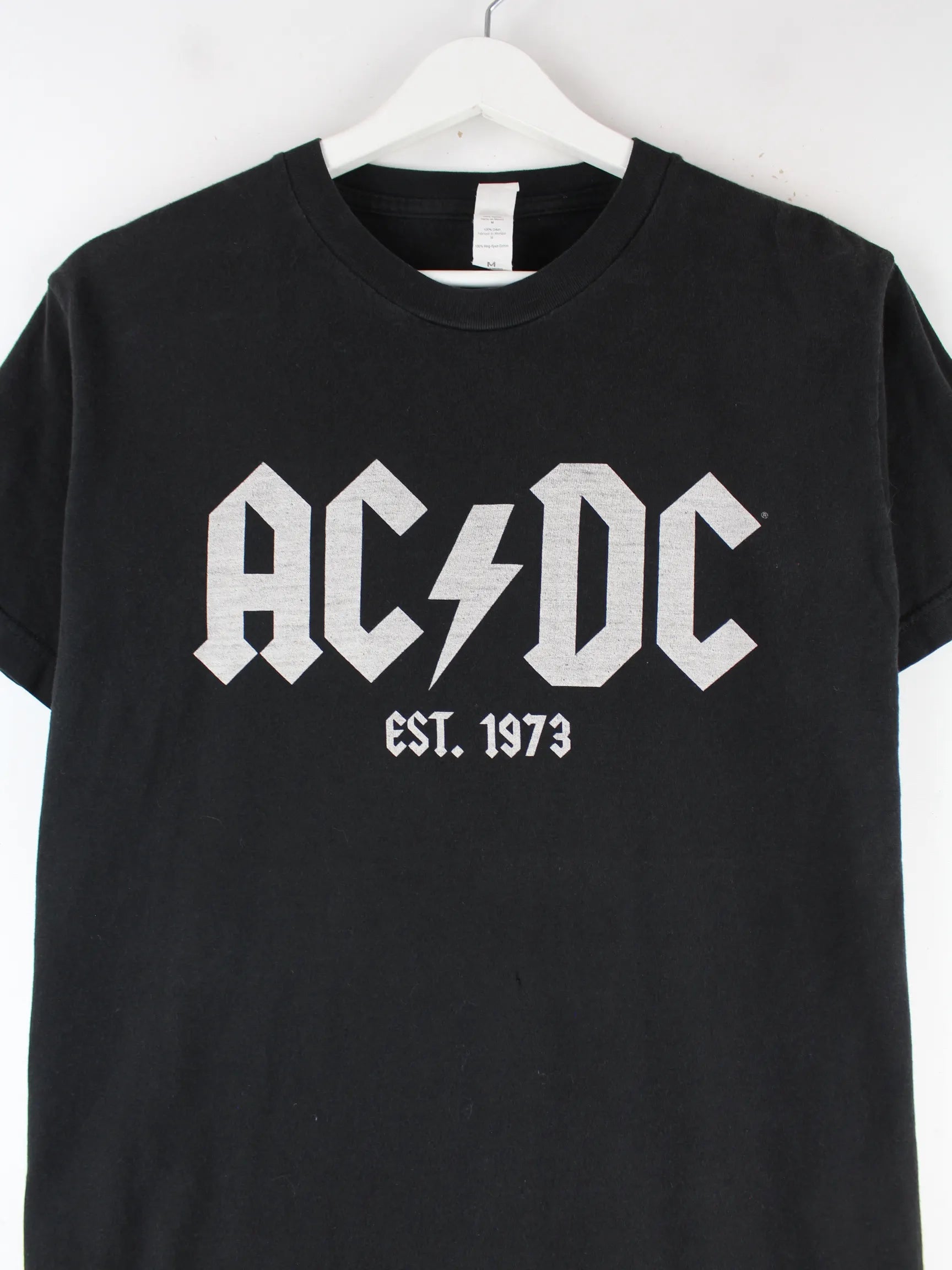 T-Shirt der Marke Tultex in Größe M. Es ist aus Baumwolle angefertigt und in Schwarz in Stock. Mit schickem ACDC Print.