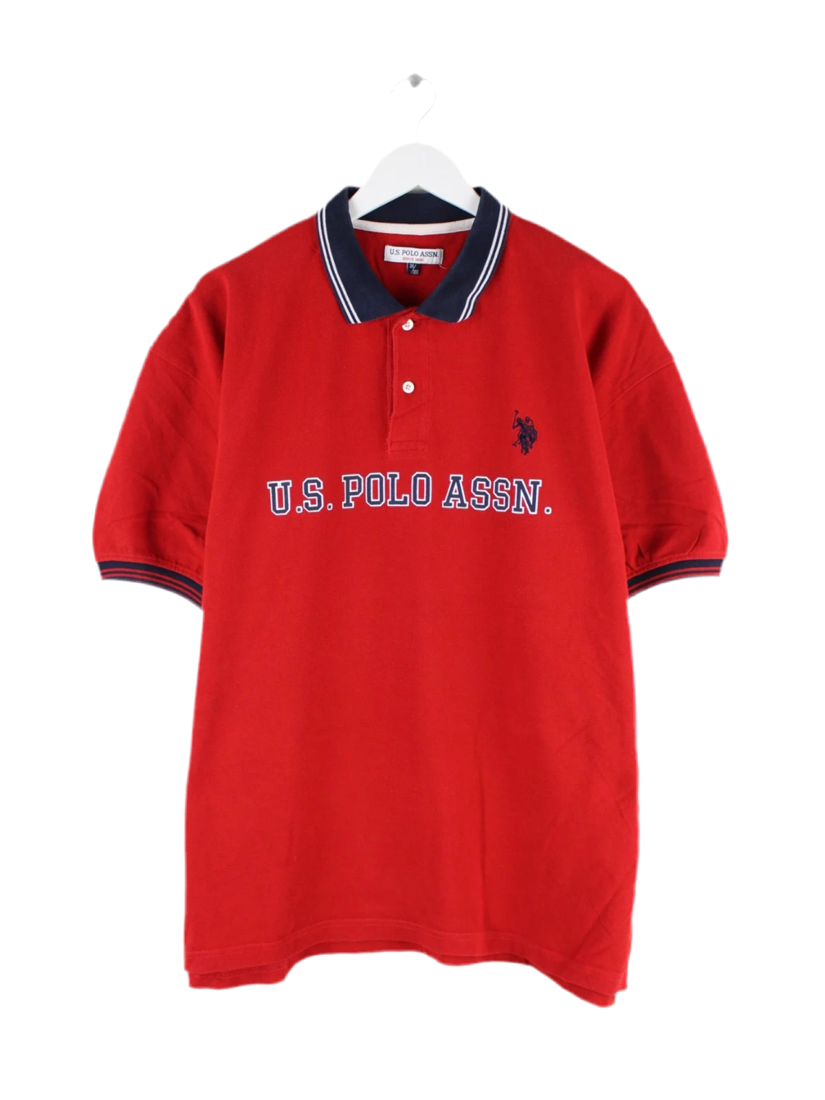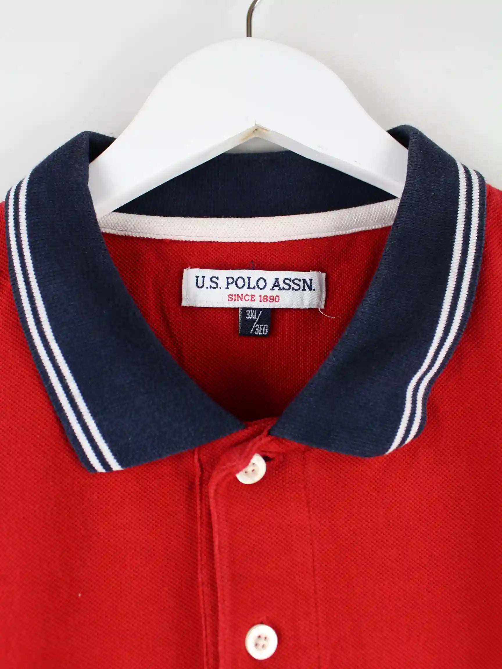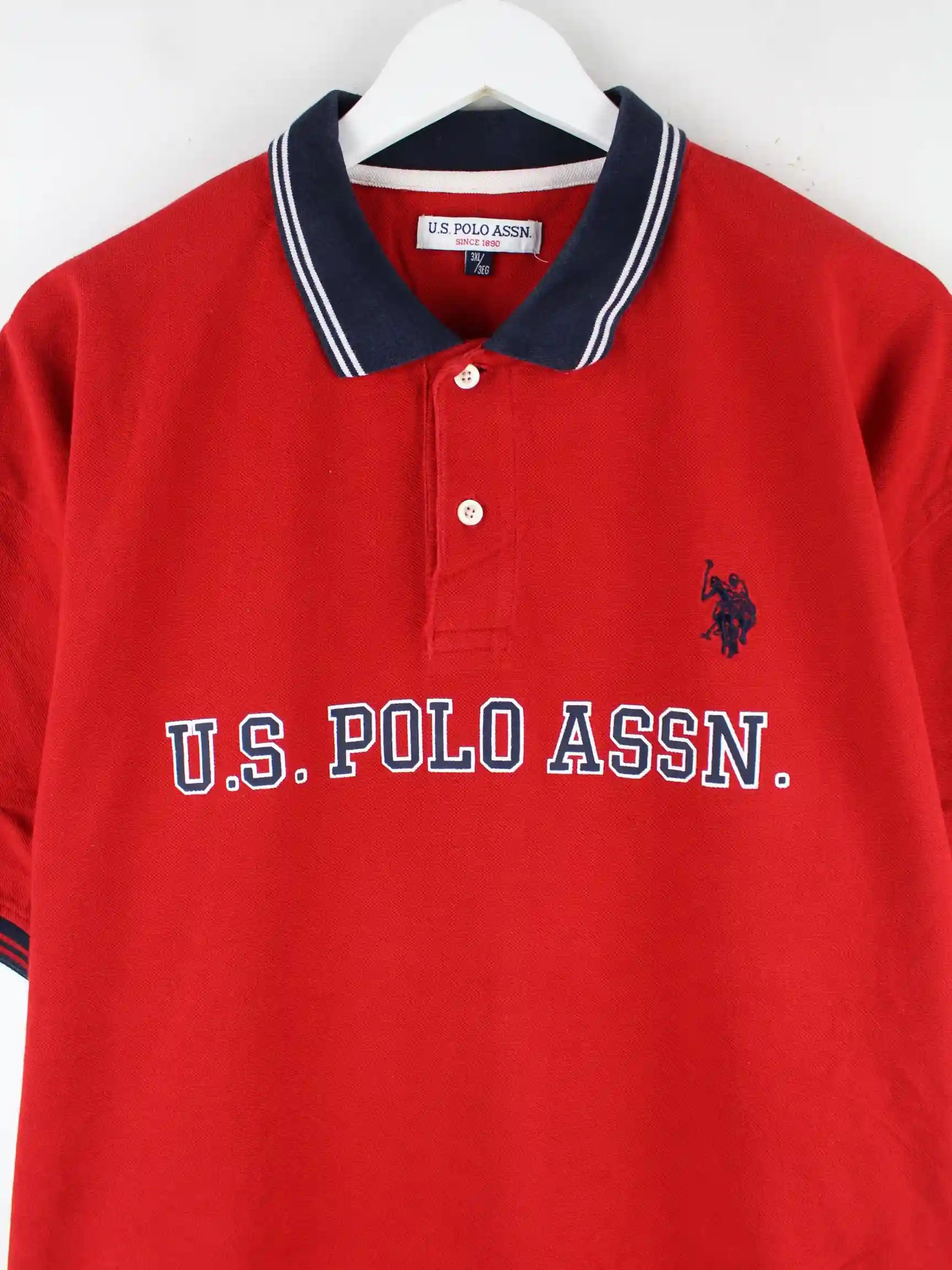 Rotes Poloshirt des Labels U.S. Polo ASSN. in Größe 3XL. Es ist aus Baumwolle gemacht und in sehr gutem Zustand bei uns zu bekommen. Mit schickem 00s Print.