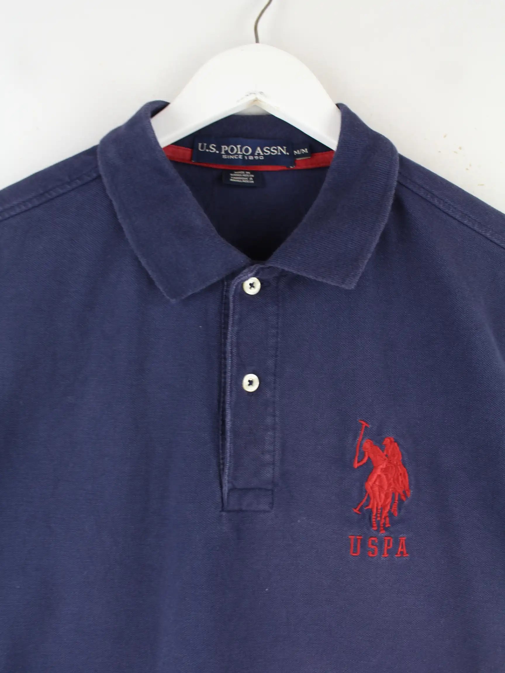 Poloshirt von U.S. Polo ASSN. mit Stickereien in Größe M. Es ist aus Baumwolle und in Blau bei uns zu bekommen.