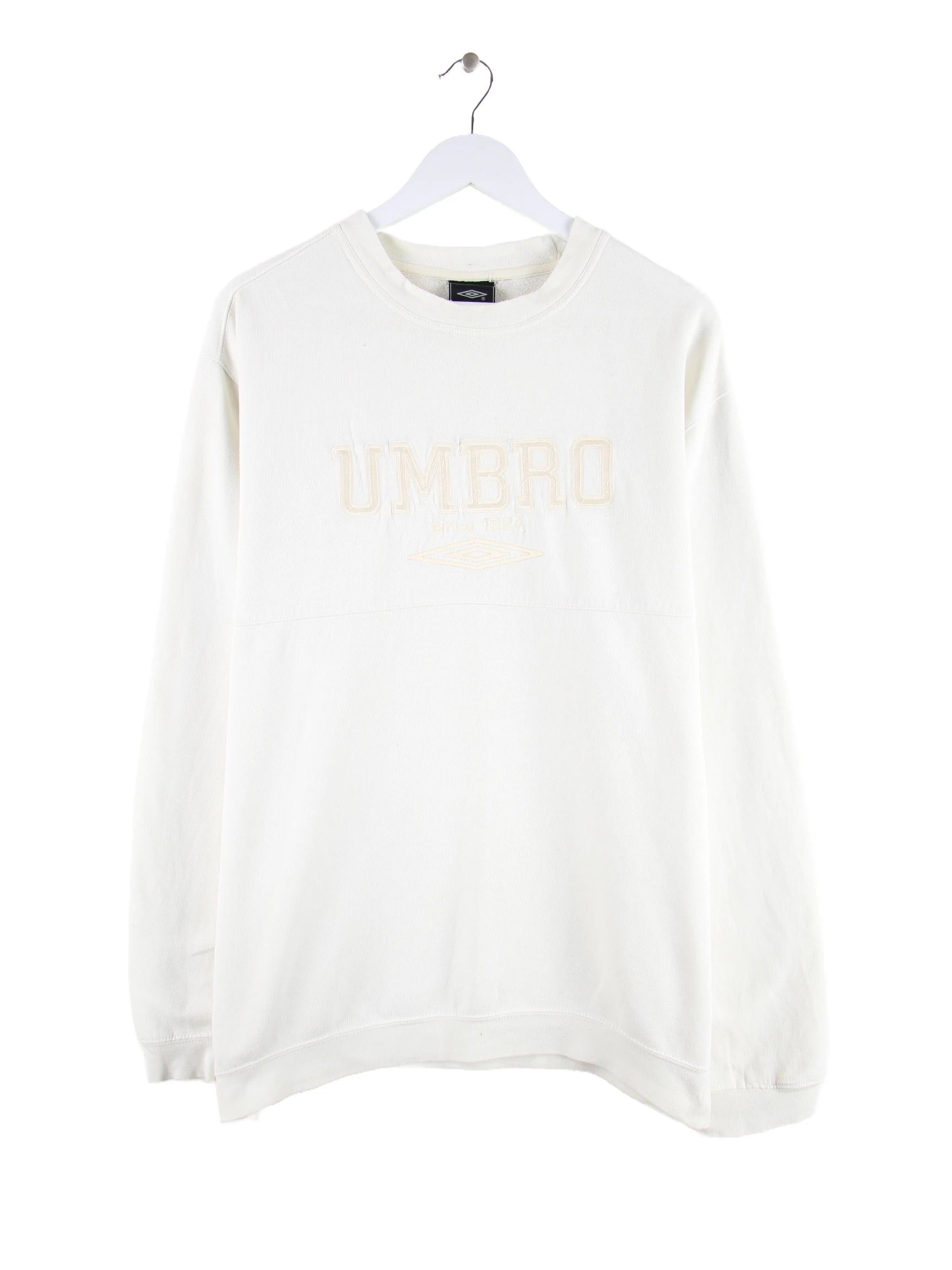 Weißer Sweater vom Brand Umbro in Größe XL. Er ist aus einer Baumwollmischung und in sehr gutem Zustand im Bestand.
