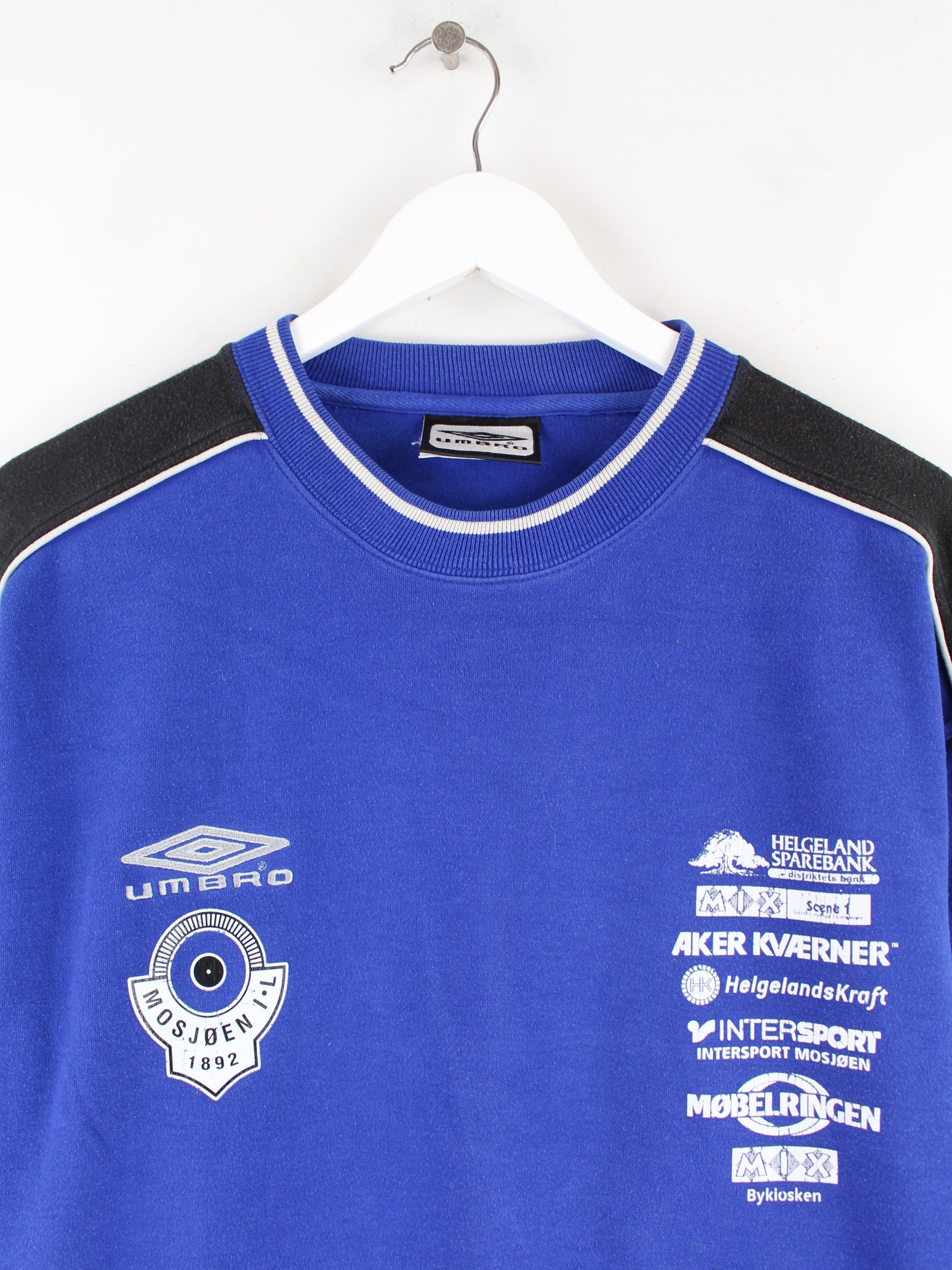 Sweater from the brand Umbro in size L from the 90's. It is made from a cotton blend and is available in blue.