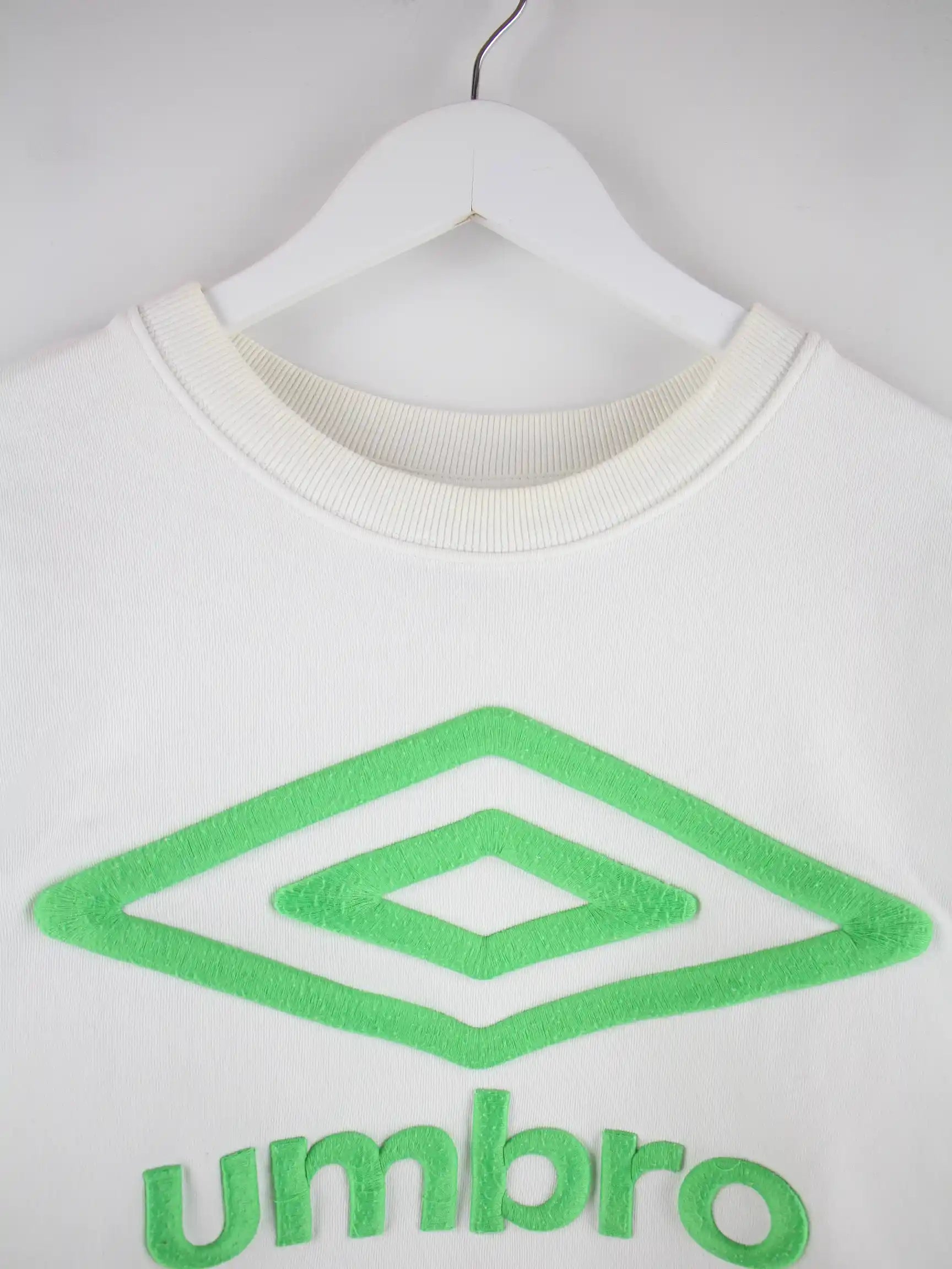 Sweater vom Brand Umbro in Größe S. Er ist aus einer Baumwollmischung gefertigt und in Weiß zu bekommen.