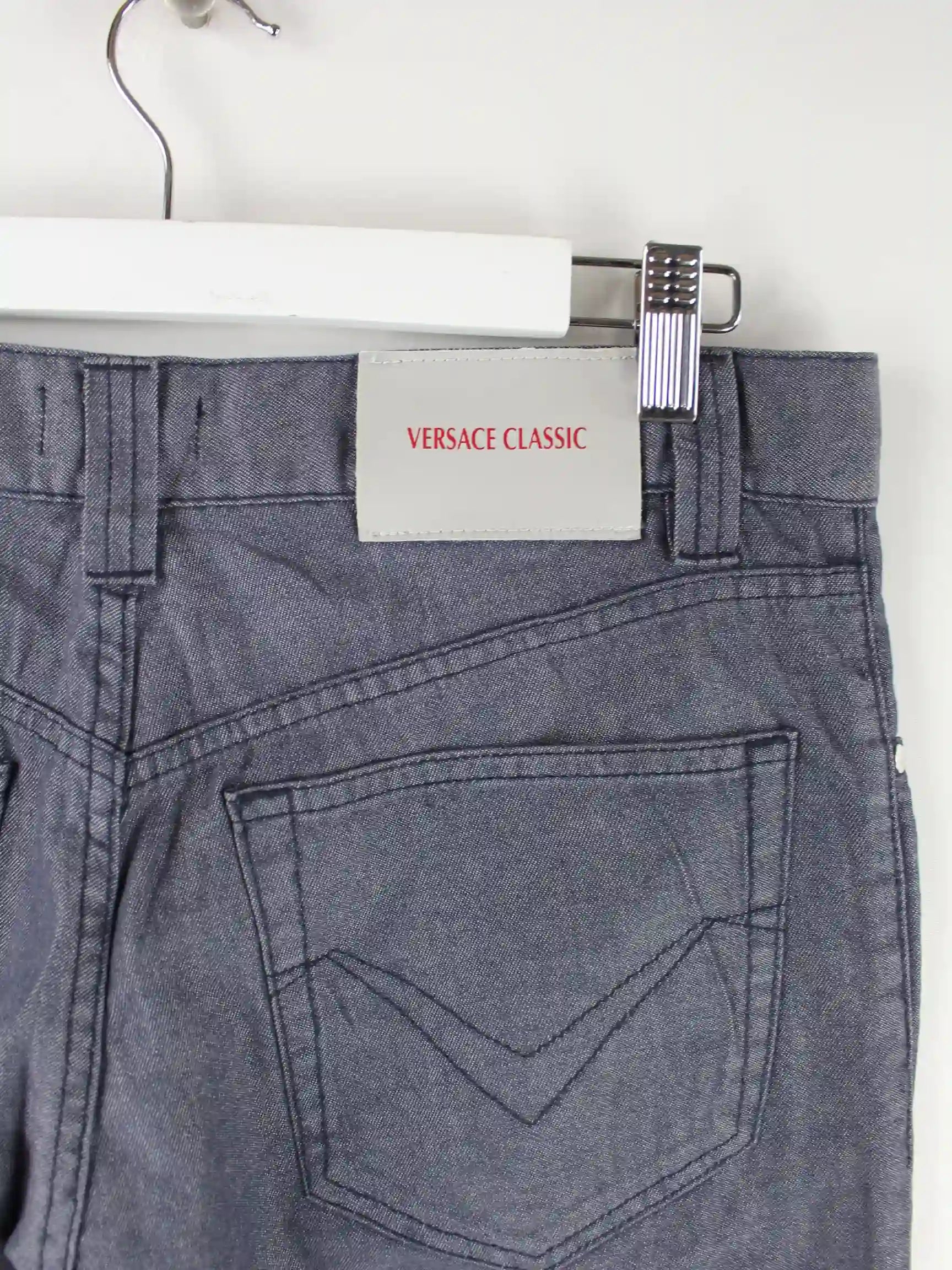 Graue Versace Hose in W34 aus einer Baumwollmischung und in gutem Zustand.