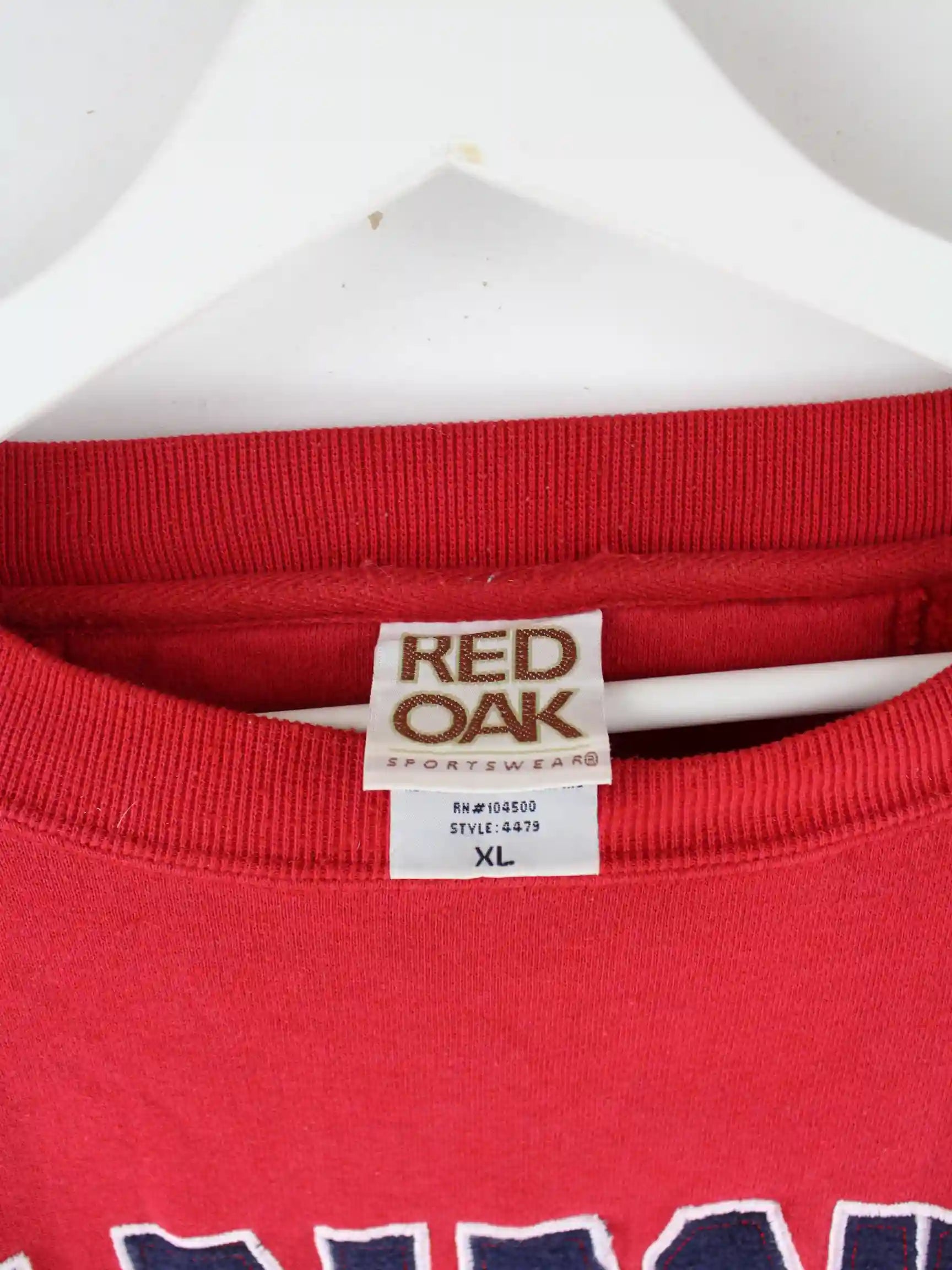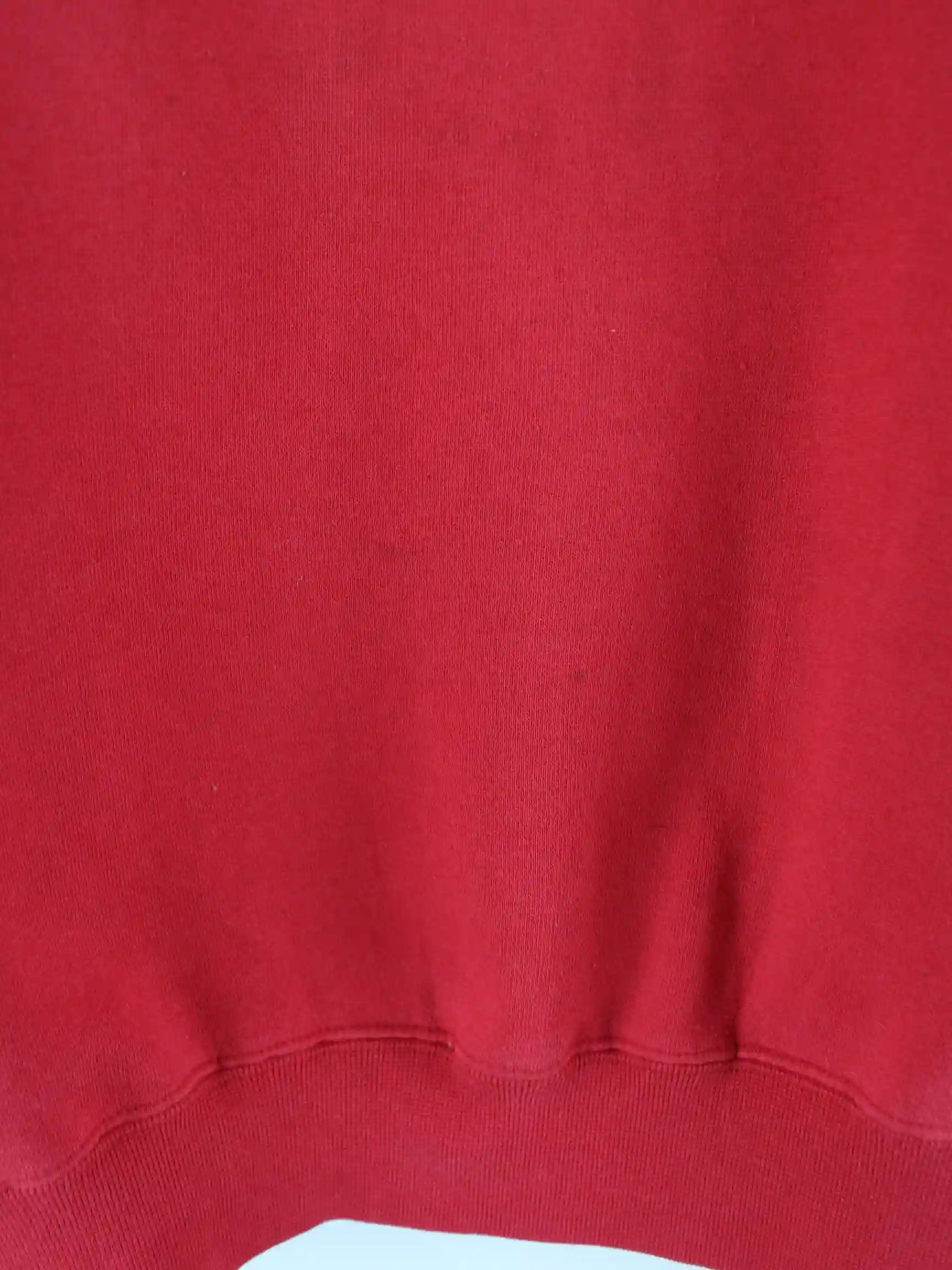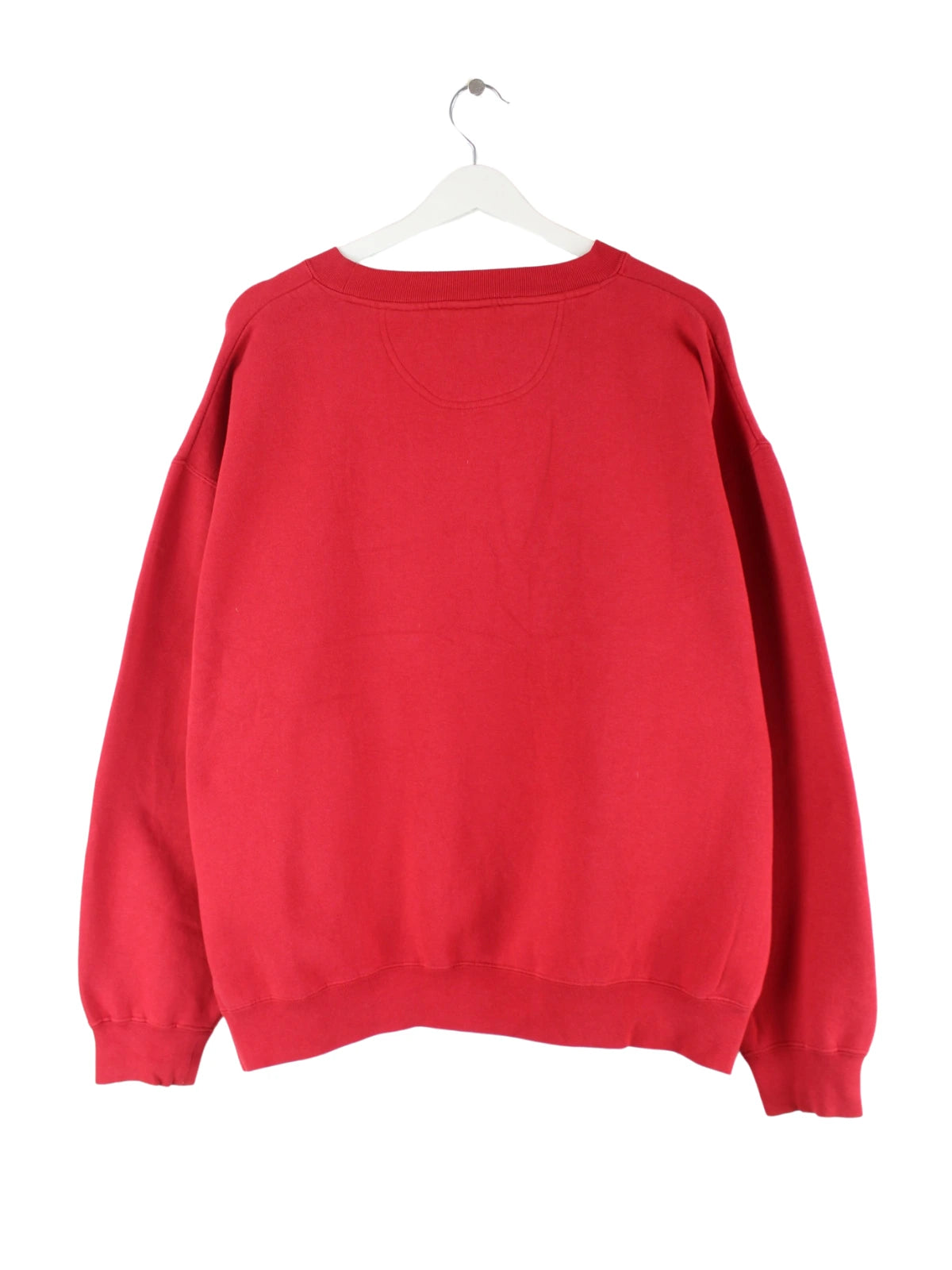 Vintage Sweater mit Stickereien in Größe XL. Er ist aus einer Baumwollmischung angefertigt und in Rot zu haben.