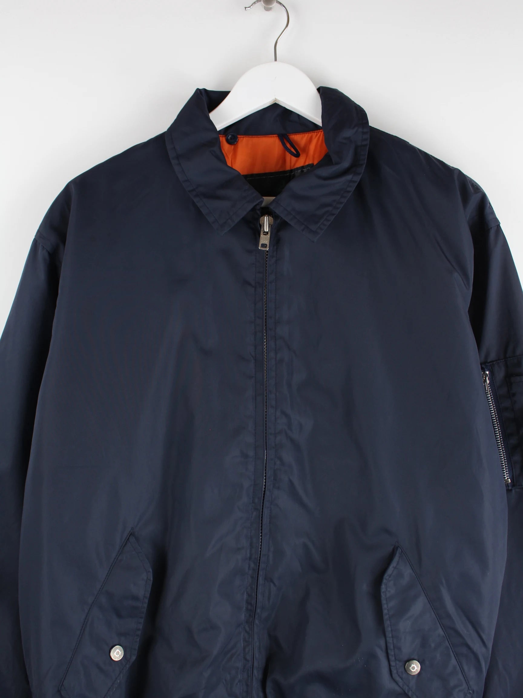 Blaue Vintage Jacke in Größe XL. Sie ist aus Synthetik angefertigt. Den Zustand würden wir als 'In Ordnung' bezeichnen (vergl. Bilder).