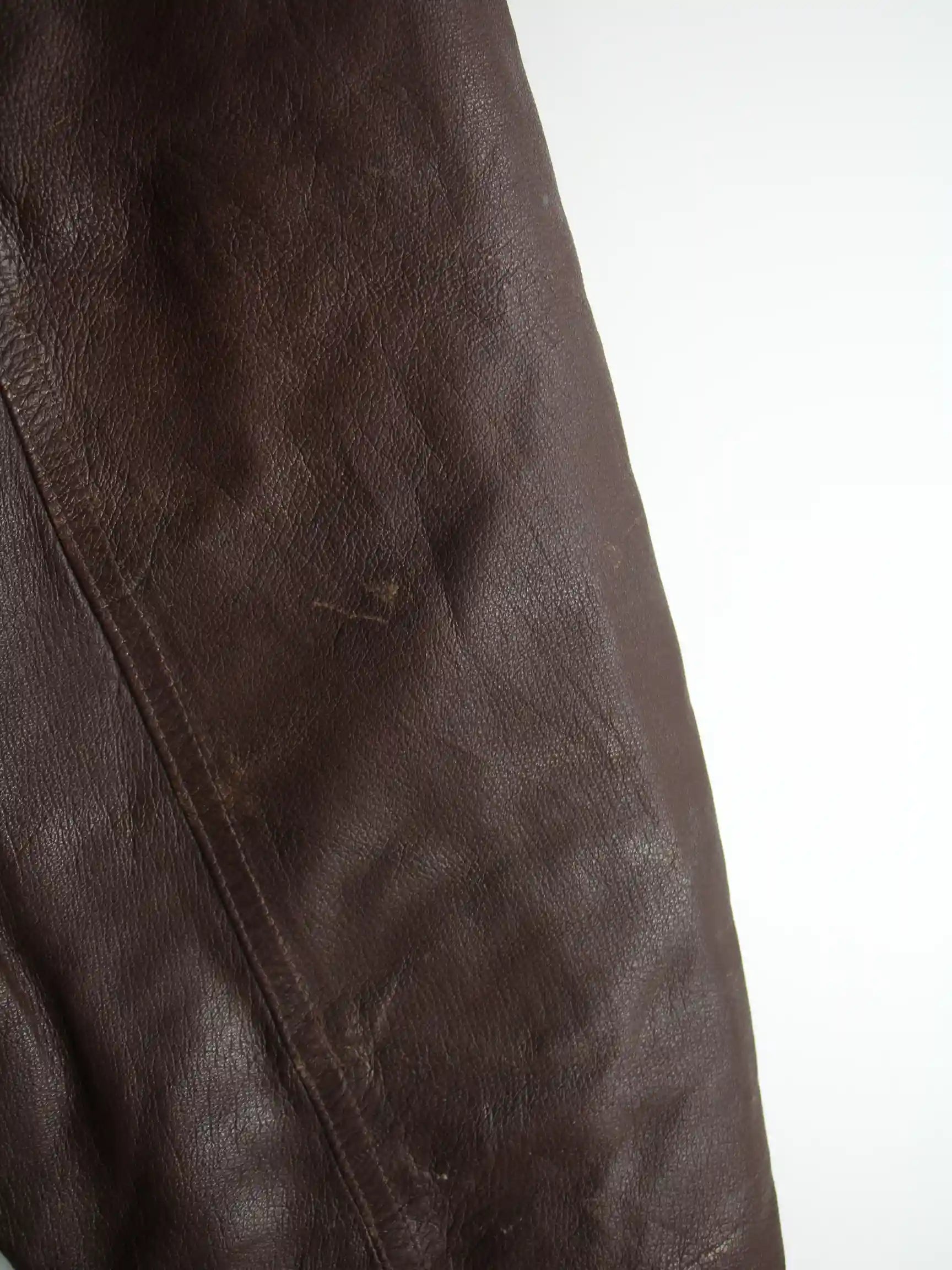 Vintage Jacke in Größe XL. Sie ist aus Leder gemacht und in Braun zu haben.