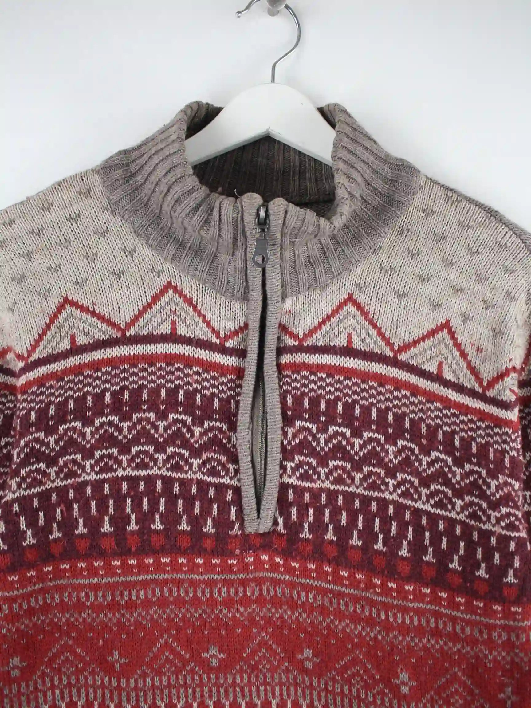 Vintage Pullover mit kurzem Reißverschluß in Größe M. Er ist aus Baumwolle hergestellt und in Grau im Bestand.