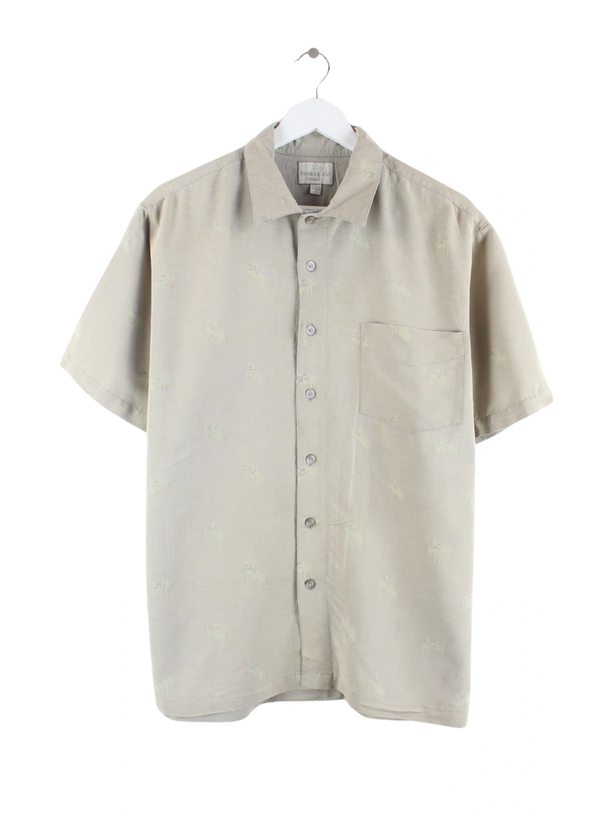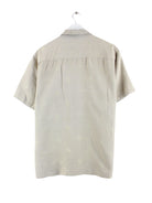 Vintage Freizeit Hemd in Größe L. Es ist aus einer Synthetikmischung gefertigt und in Beige lieferbar.