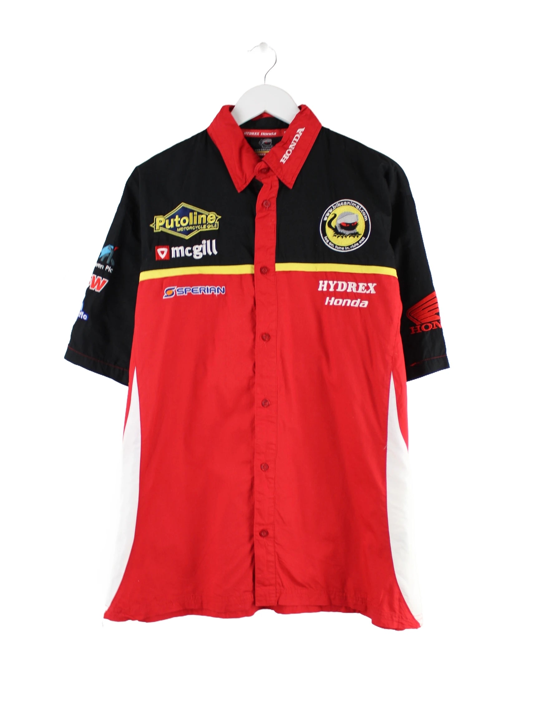 Vintage 00s Honda Racing Kurzarm Hemd Rot XL