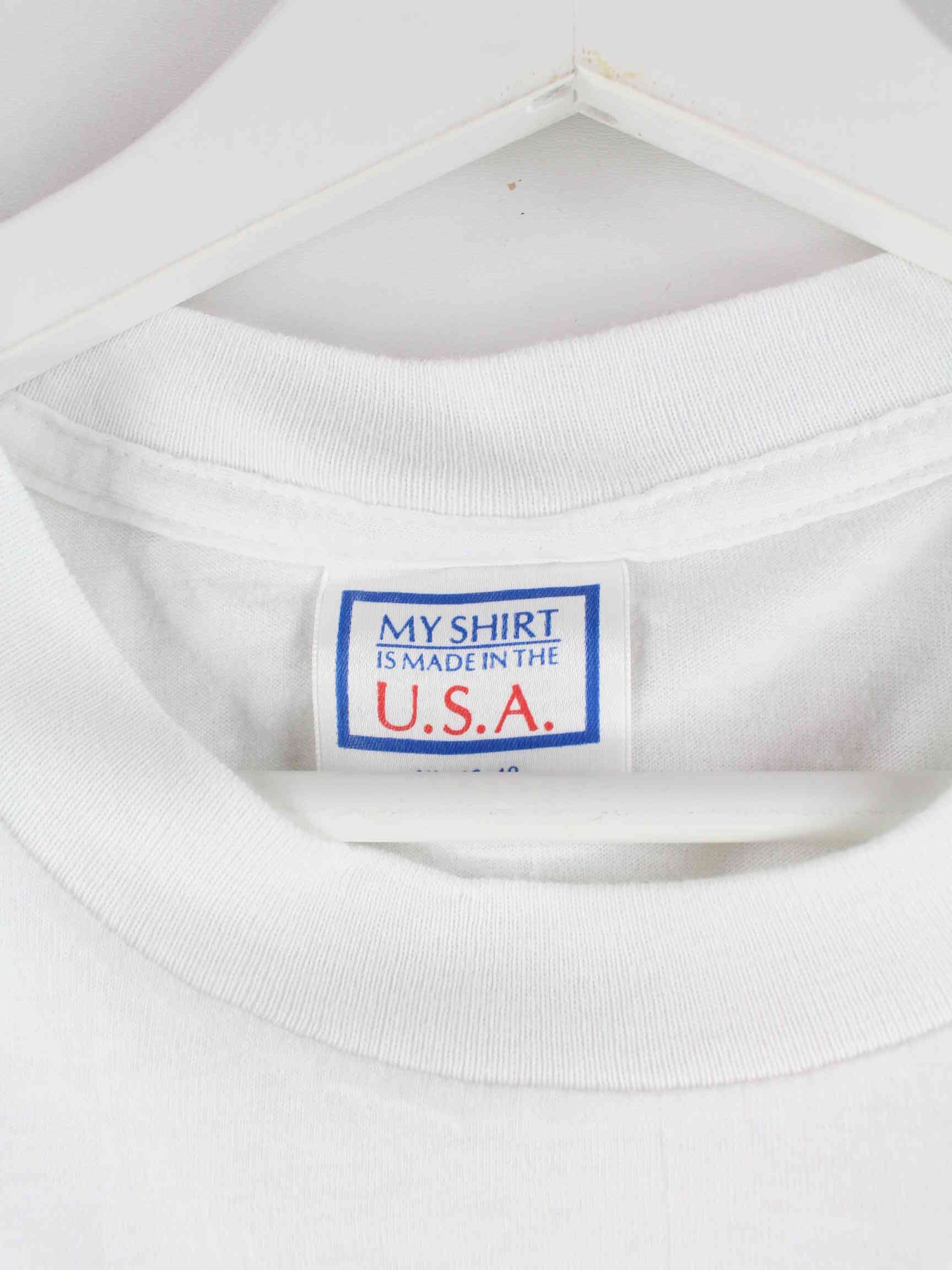 White vintage t-shirt in size XL. It is made of cotton and is in very good condition in stock.