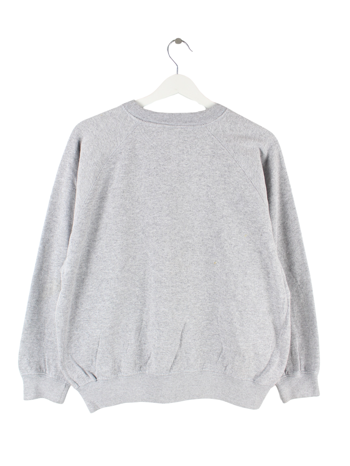 Grauer Vintage Sweater in Größe S. Er ist aus einer Baumwollmischung hergestellt und in gutem Zustand in Stock. Mit tollem Boy Print.