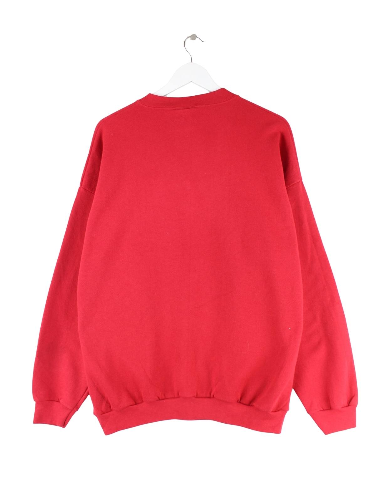 Vintage Sweater mit gesticktem Logo in Größe XL. Er ist aus einer Baumwollmischung gemacht und in Rot zu haben.